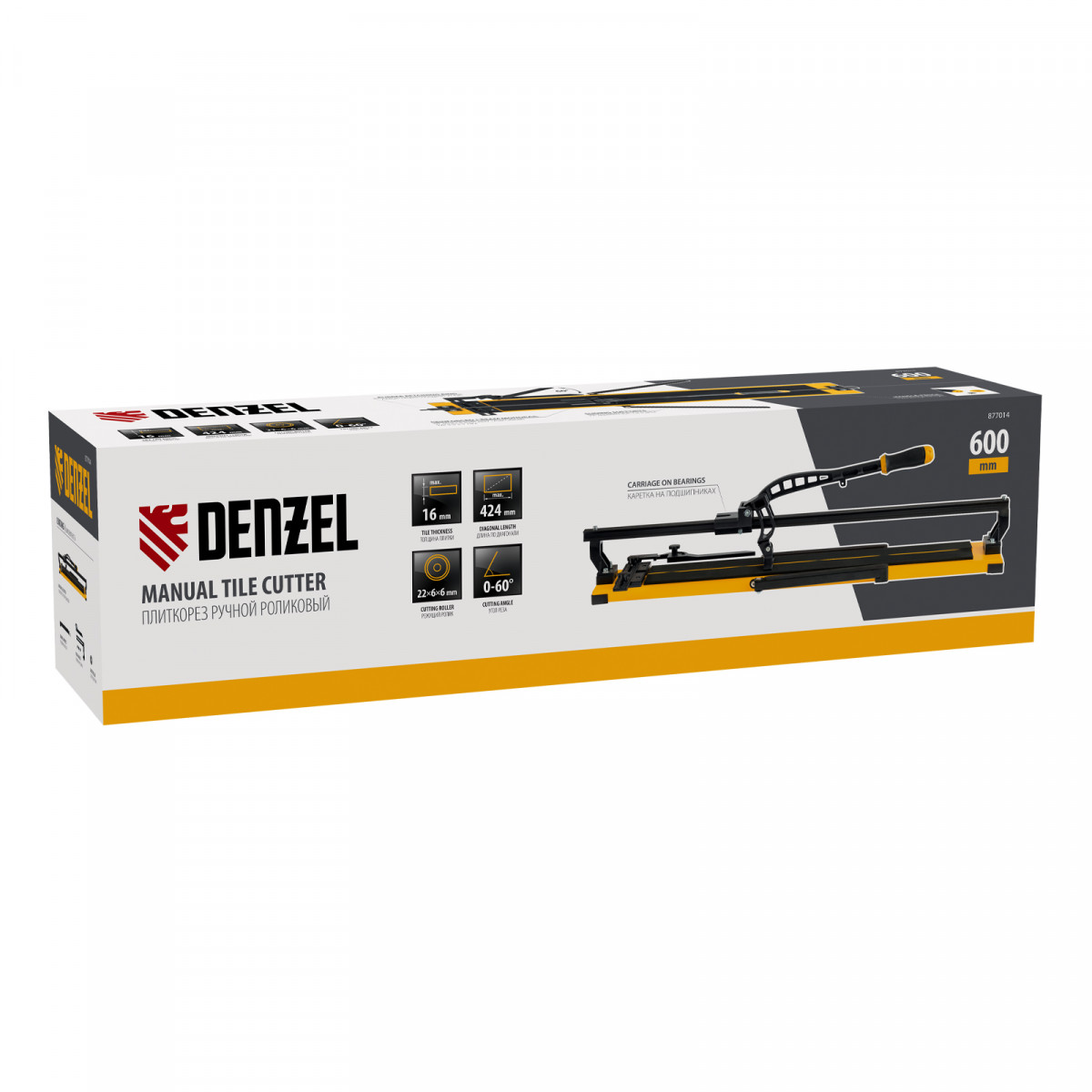 Плиткорез рельсовый 600х16мм, каретка на подш., стальная станина, усил. рукоятка-пенал Denzel