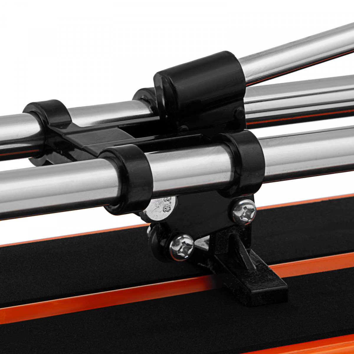 • Точность выполняемых работ — металлическая линейка-угольник облегчает позиционирование плитки на станине, твердосплавный режущий ролик обеспечивает аккуратный рез.
