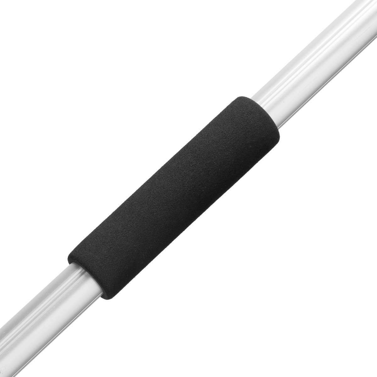 • Эргономичность — алюминиевая штанга не утяжеляет конструкцию, ПВХ-накладка и полипропиленовая рукоятка обеспечивают надежный хват.