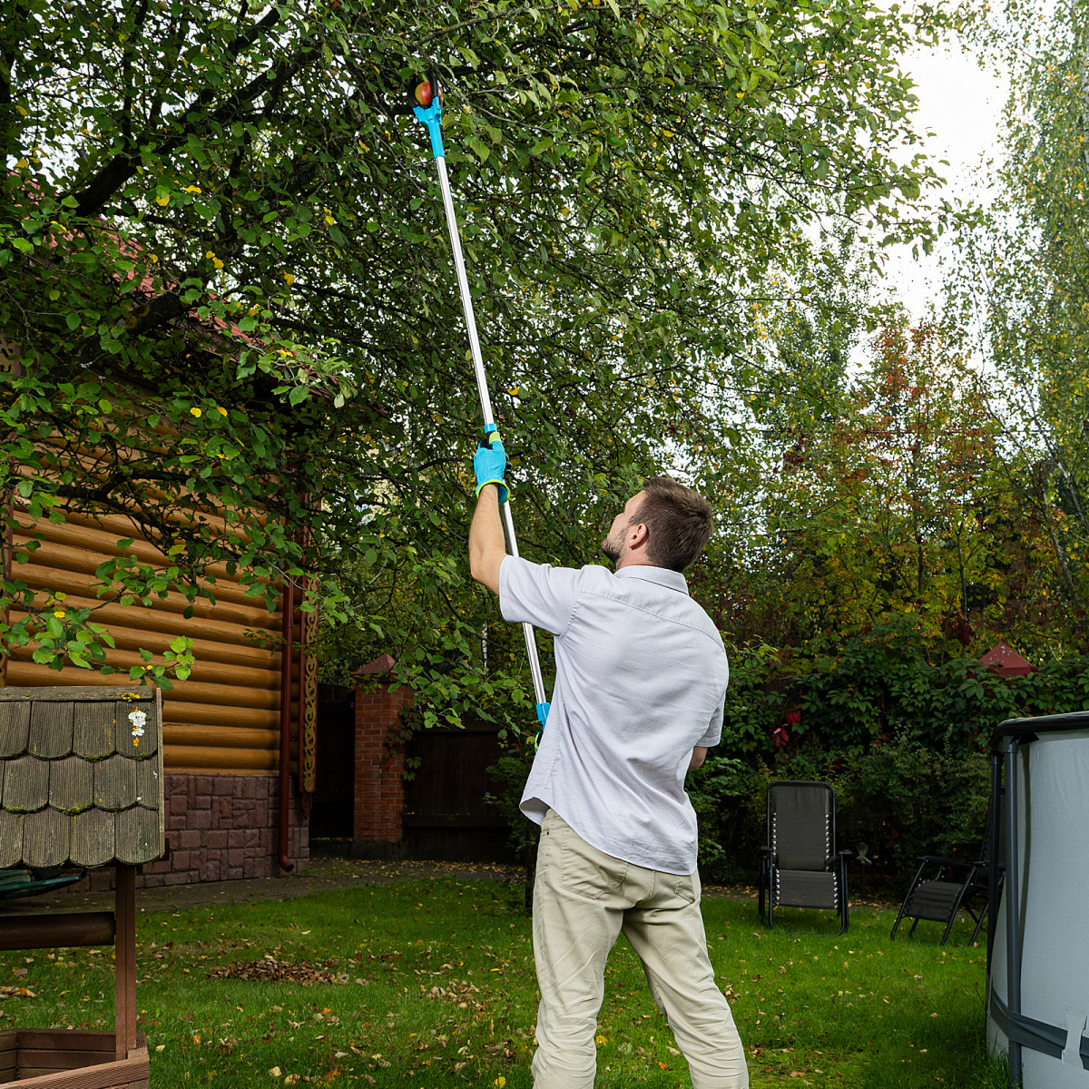 Плодосъемник Palisad LUXE 64397 длиной 1900 мм, с алюминиевой штангой, предназначен для сбора высоко расположенных фруктовых плодов диаметром до 110 мм. Усилие стягивания составляет 3 кгс, что позволяет без труда снимать фрукты с веток. Инструмент используется во время сбора урожая.