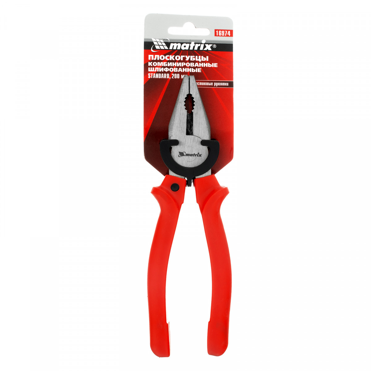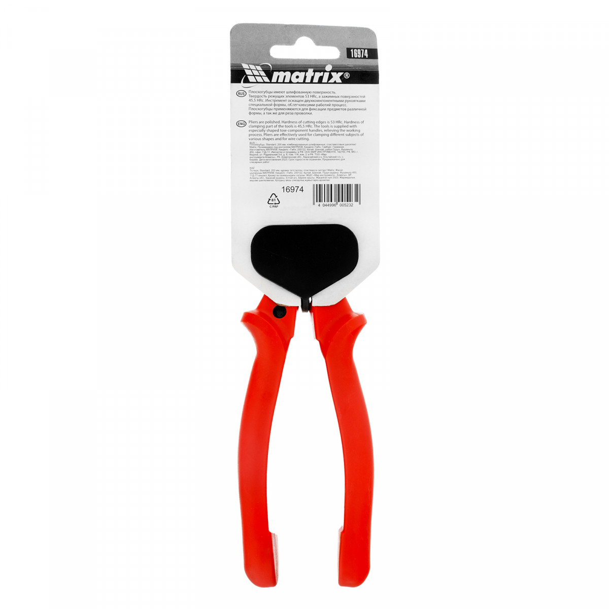 Плоскогубцы комбинированные Standard, 200 мм, шлифованные, пластмассовые рукоятки Matrix