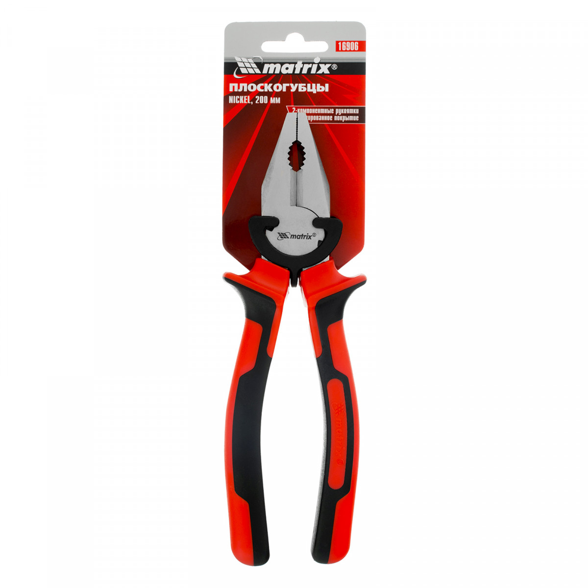 Плоскогубцы Nickel, никелированные 200 мм, двухкомпонентные рукоятки Matrix