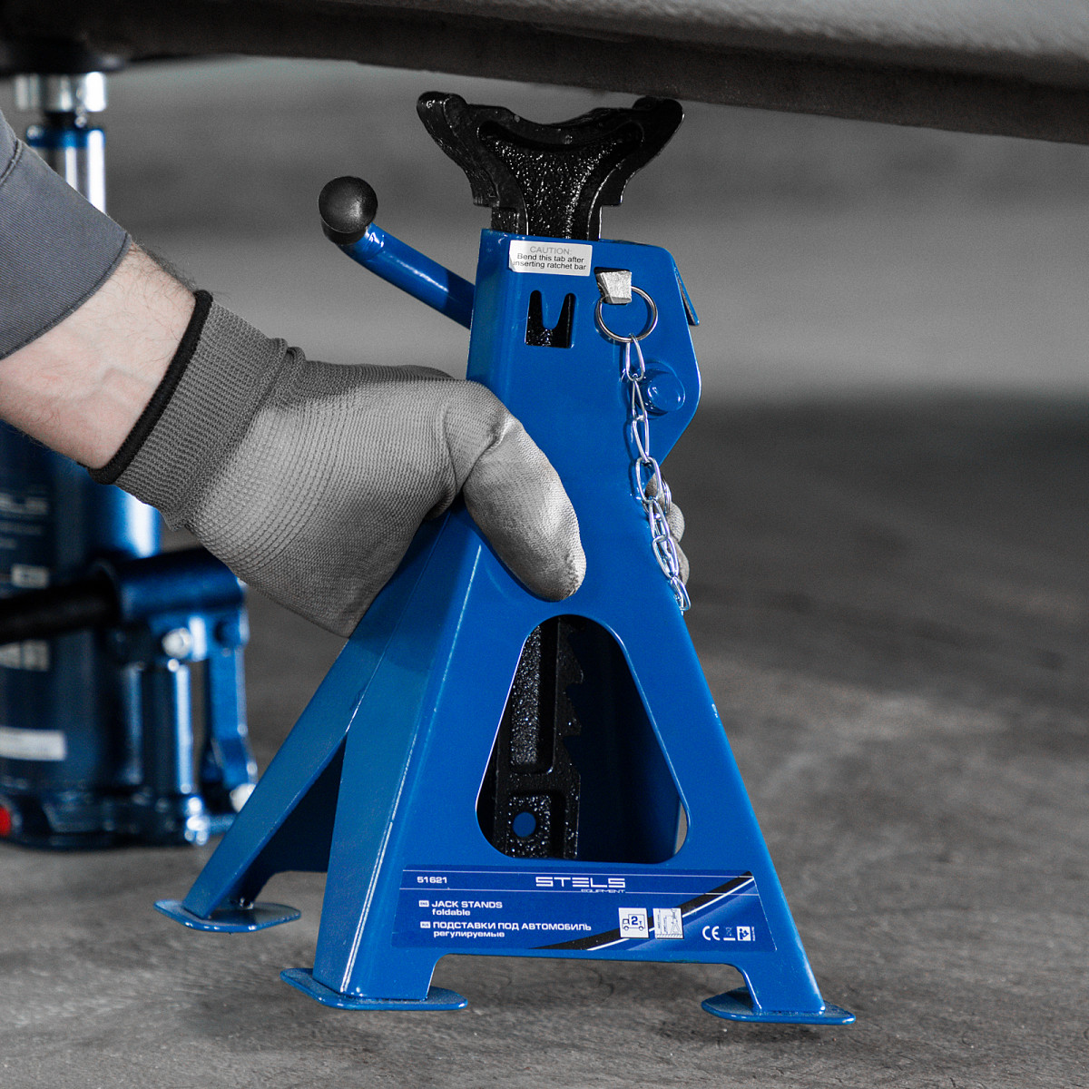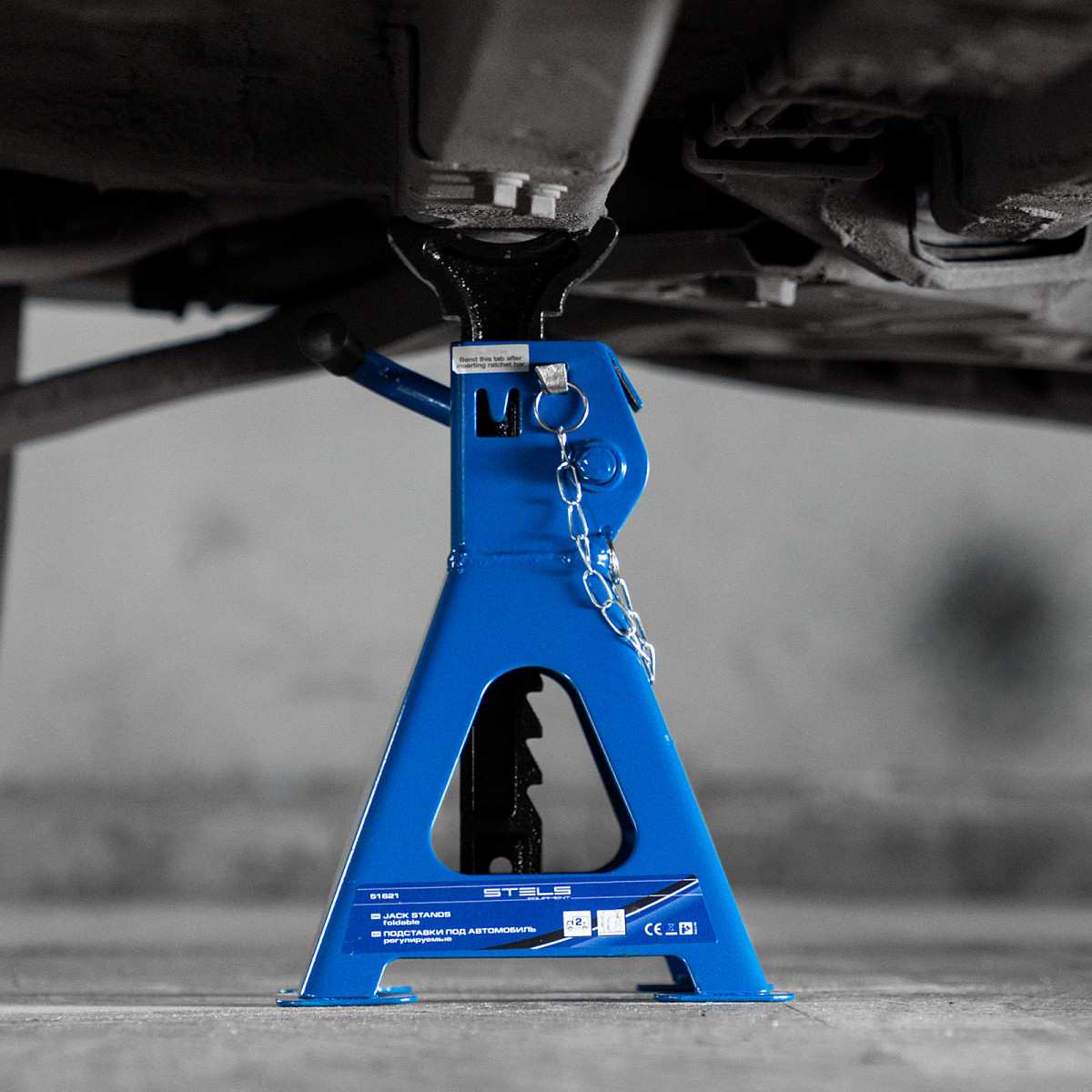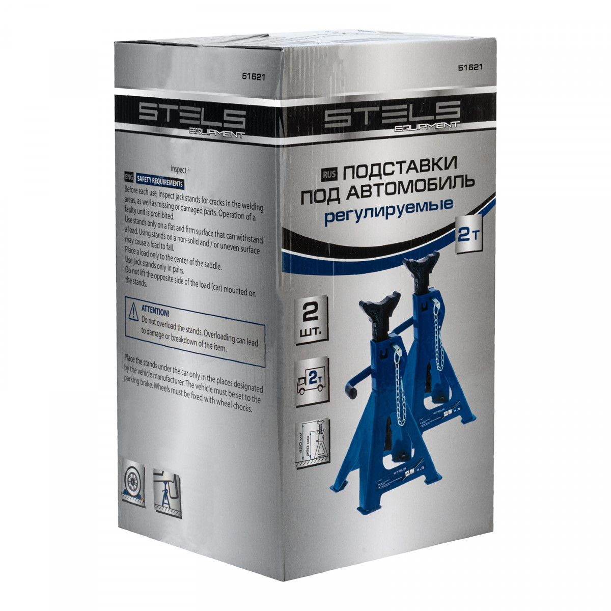 Регулируемые подставки под автомобиль Stels 51621 грузоподъемностью 2 т, с высотой подъема 280-420 мм, 2 шт. в комплекте, используются в качестве дополнительной поддержки во время ремонта автотранспорта. Подставки удерживают автомобиль на необходимой высоте при помощи регулируемых штоков с зубчатым механизмом фиксации. Каждая стойка снабжена страховочным штифтом, что исключает риск случайного опускания штока. Подставки будут полезны для профессионального и самостоятельного авторемонта.
