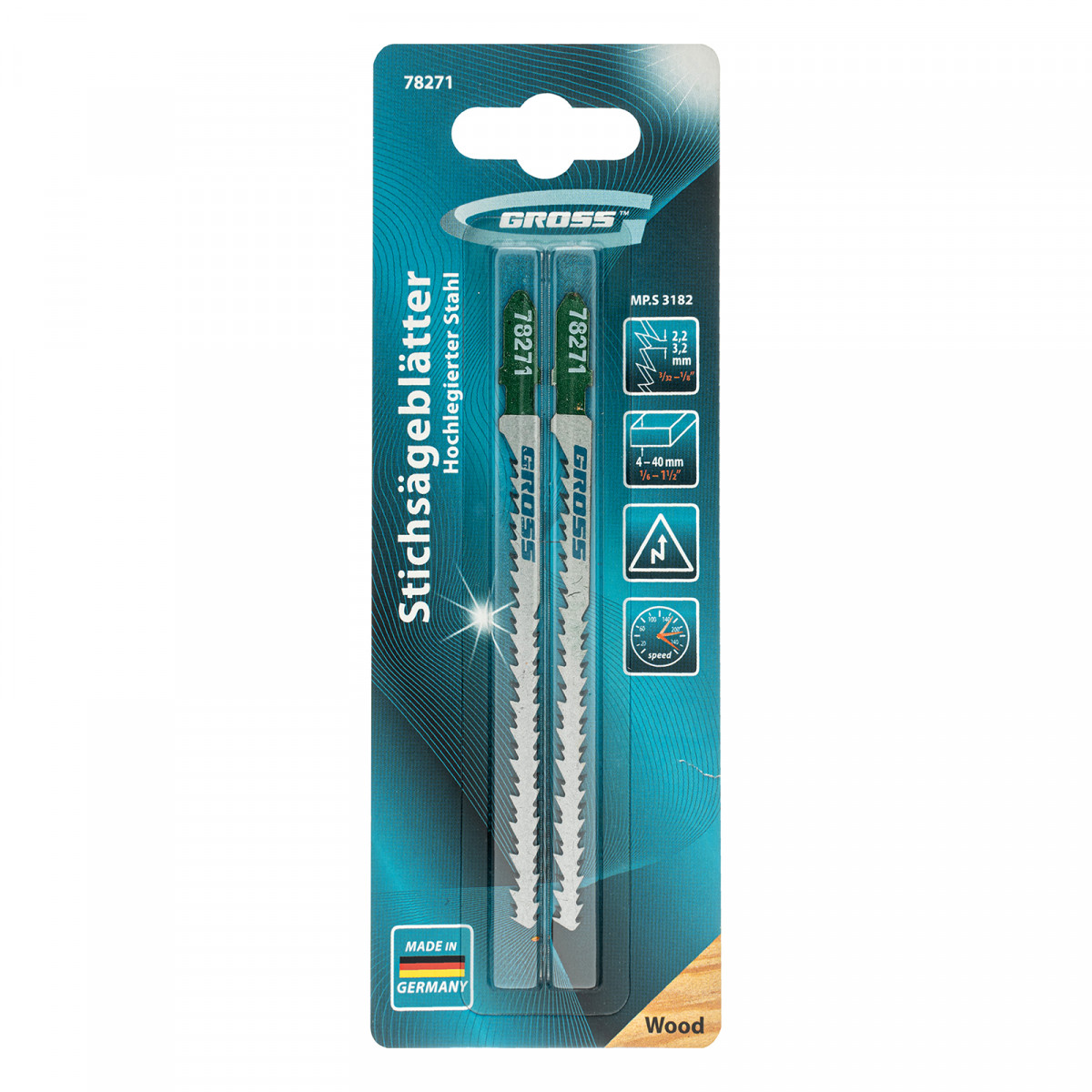 Полотна по дереву 3182 Gross 78271 — сменные режущие элементы, подходящие для большинства современных электролобзиков. Производят прямой рез деревянных заготовок и изделий толщиной 4-40 мм. Предназначены для профессионального применения во время ремонтных и строительных работ.