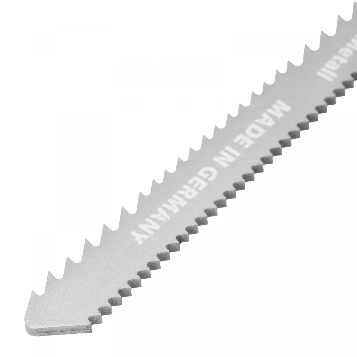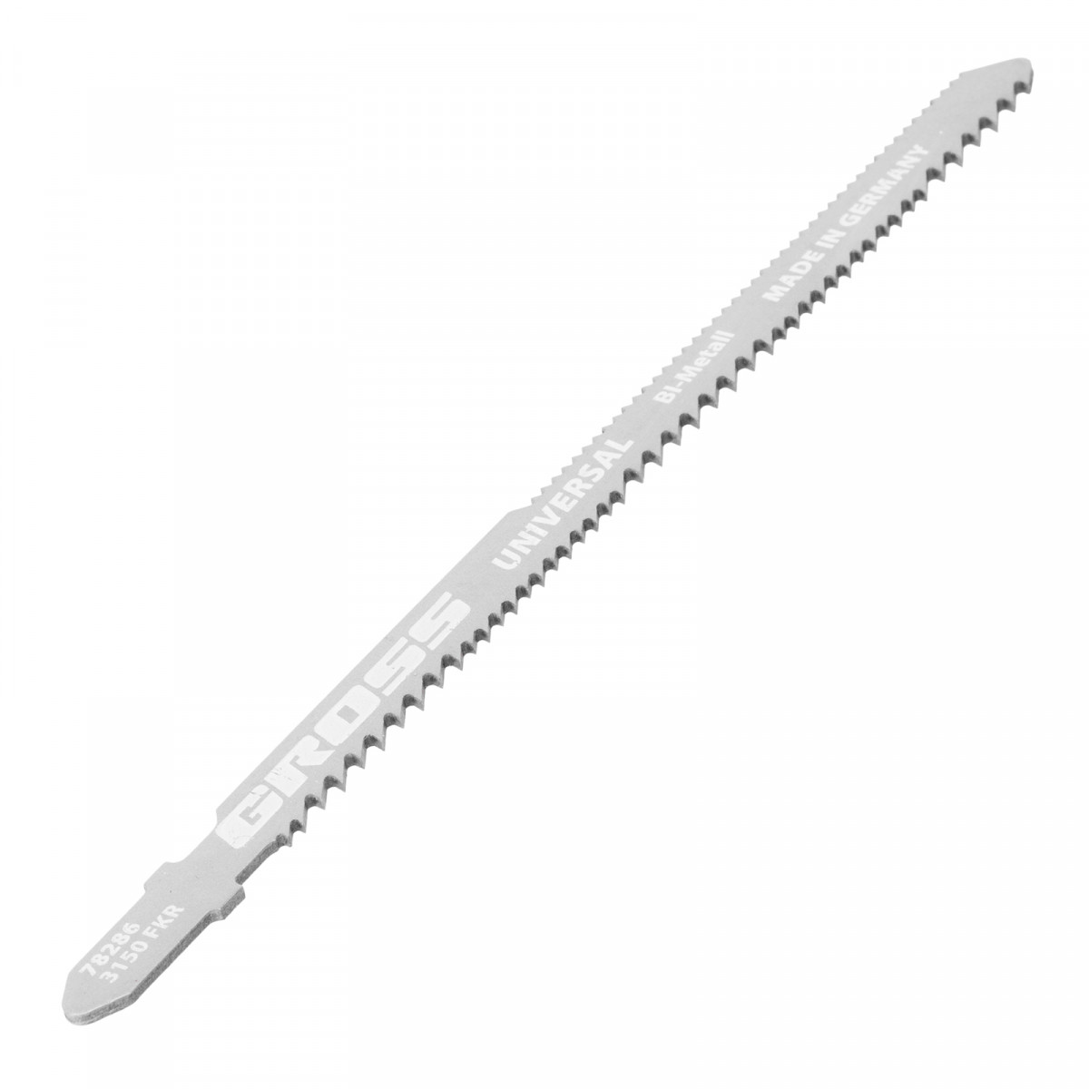 Универсальные двусторонние полотна Gross 78286, 2 шт. (3150 - FKR), предназначены для фигурного и чистого прямого реза под свободным углом. Позволяют работать практически с любым типом материалов: черным и цветным металлом, алюминиевым профилем и трубами толщиной 3-10 мм, оргстекла и пластмассы 3-100 мм, ламината, ДСП, древесины 5-100 мм, в том числе клееной. Полотна изготовлены из качественных материалов на высокотехнологичном производстве в Германии, поэтому рассчитаны на профессиональное использование.