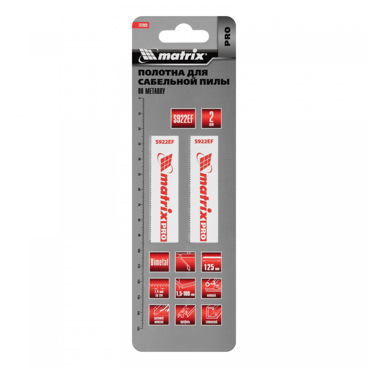 Полотна по металлу для сабельной пилы S922EF Matrix PRO 782009 с рабочей длиной 125 мм и шагом зубьев 1,4 мм, биметаллические (Bimetal), — комплект из 2 шт., предназначенных для распила профилированного алюминия и листового металла толщиной от 1,5 до 4 мм. Полотна имеют универсальные хвостовики и совместимы с большинством моделей сабельных пил. Обеспечивают гладкий и точный рез. Будут полезны на строительной площадке, в слесарной мастерской, а также в быту.