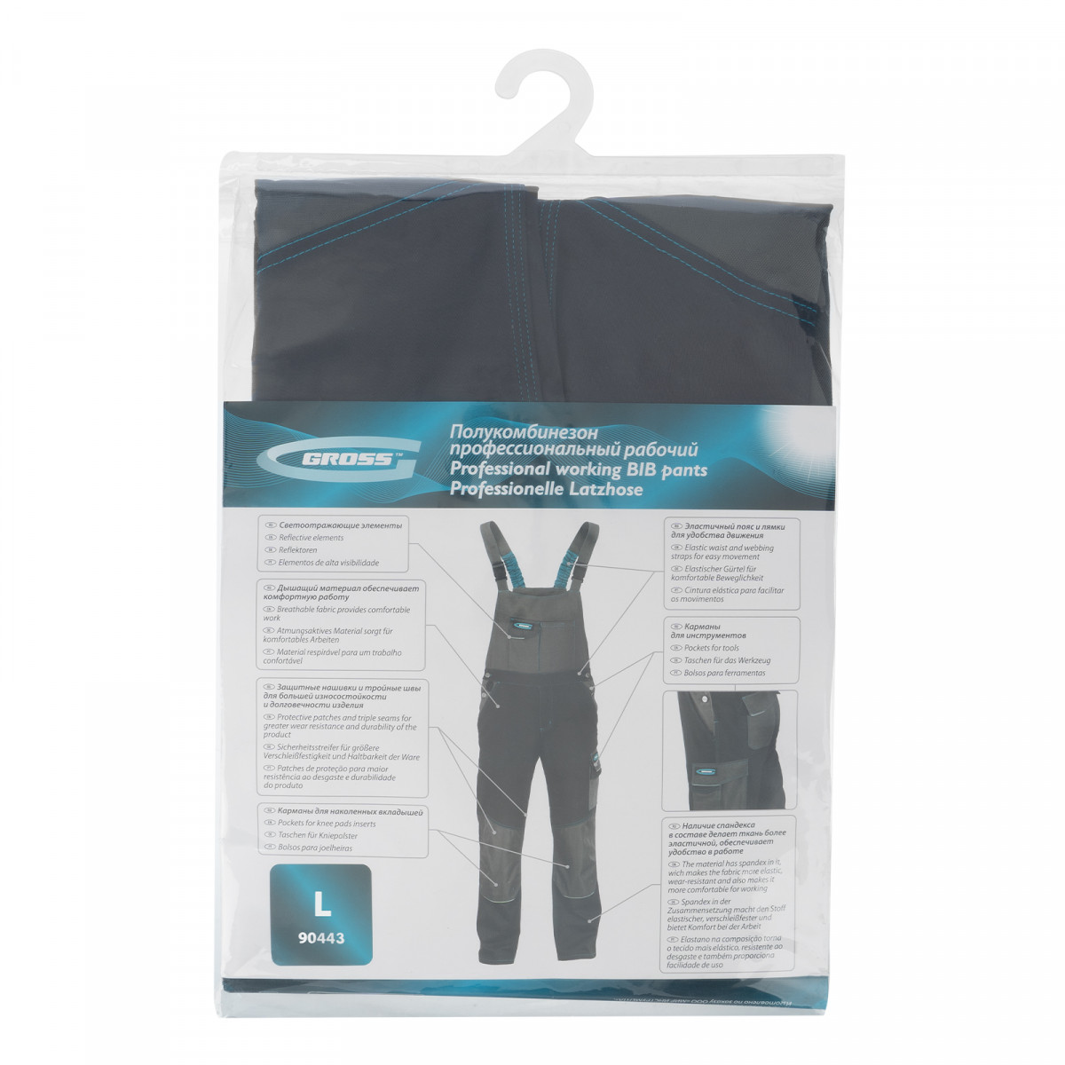 Полукомбинезон профессиональный рабочий, 97% хлопок 3% спандекс, L Gross