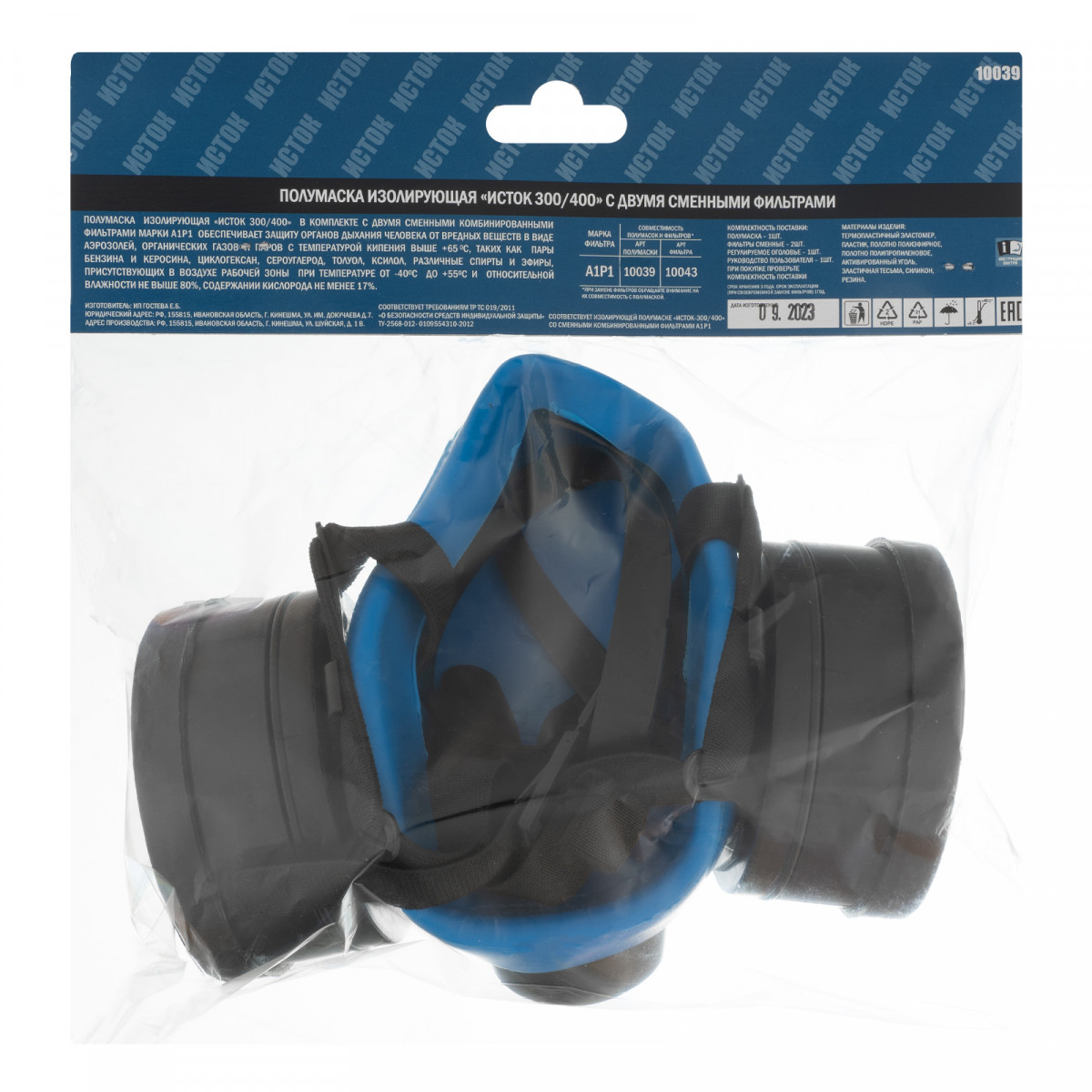 Изолирующая полумаска Исток-300/400 892437 обеспечивает качественную защиту органов дыхания за счет герметичного прилегания к лицу. Комплектуется сменными комбинированными фильтрами А1Р1 (2 шт.), которые обеспечивают защиту от вредных веществ в виде аэрозолей, органических паров и газов с температурой кипения выше +65°C, таких как пары бензина и керосина, циклогексан, сероуглерод, толуол, ксилол, различные спирты и эфиры.