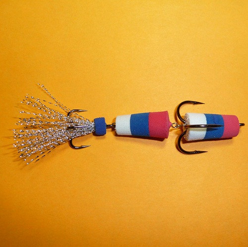 Mодель для ловли судака, щуки и сома методом джига, ловит окуня, жереха и др. Попадаются даже сазан и лещ. Применяется с грузом <чебурашка> весом 10-60 г. Обладает отличной баллистикой, что важно при ловле с берега. При хорошем клёве, рыба садится на большой тройник, при слабом - кусает за хвост и прихватывает тот тройник, что поменьше.