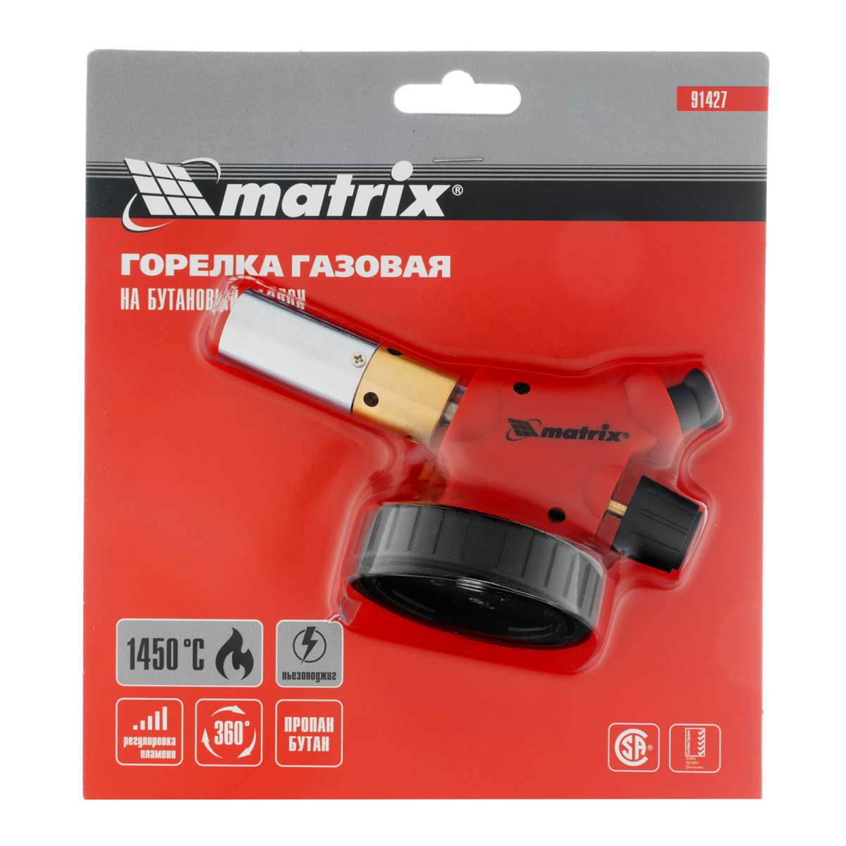 Профессиональная горелка на бутановый баллон, пьезоподжиг, расширенное сопло Matrix