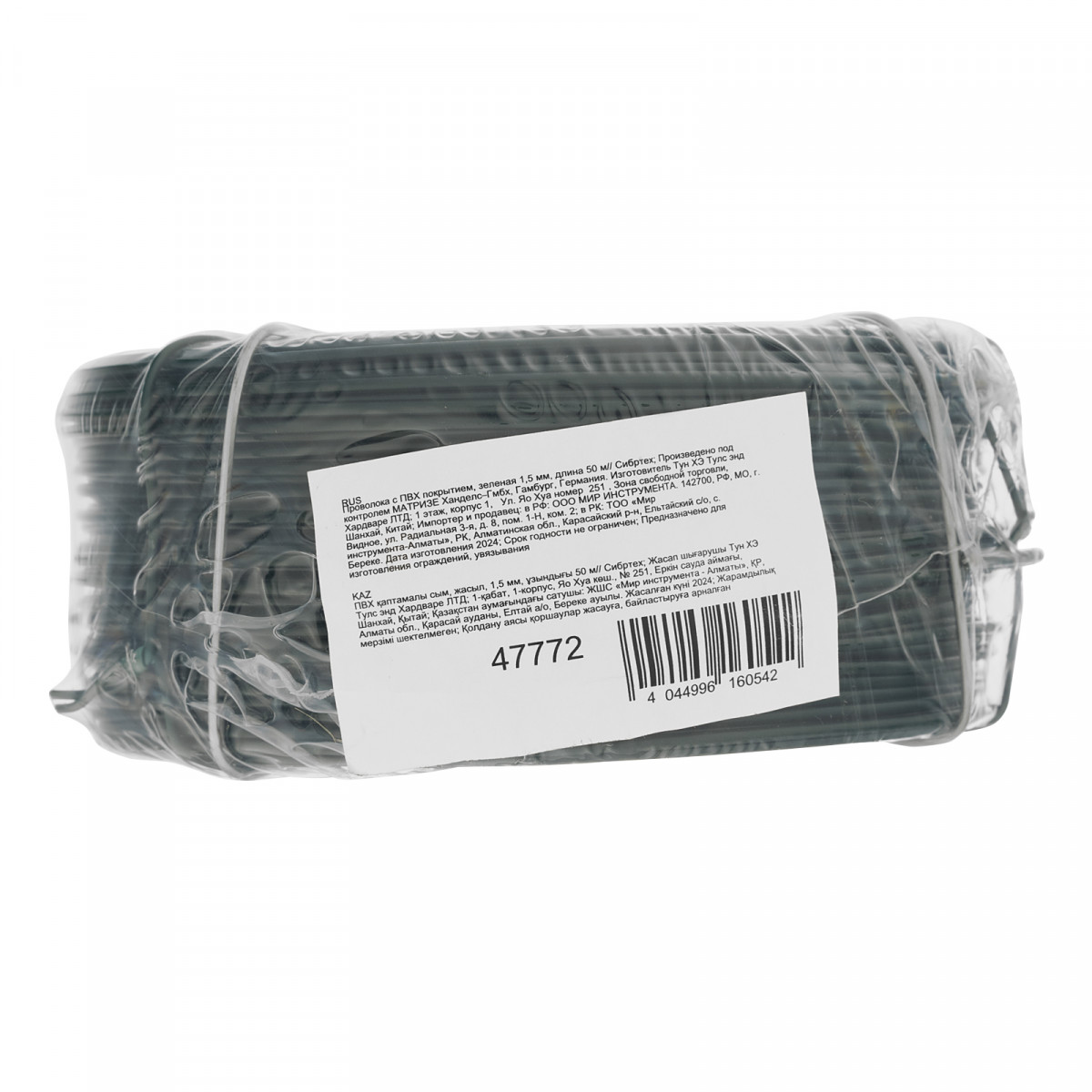 Проволока с ПВХ покрытием, зеленая 1.5 мм, длина 50 м Сибртех