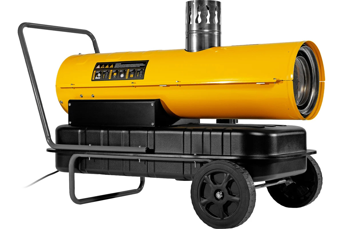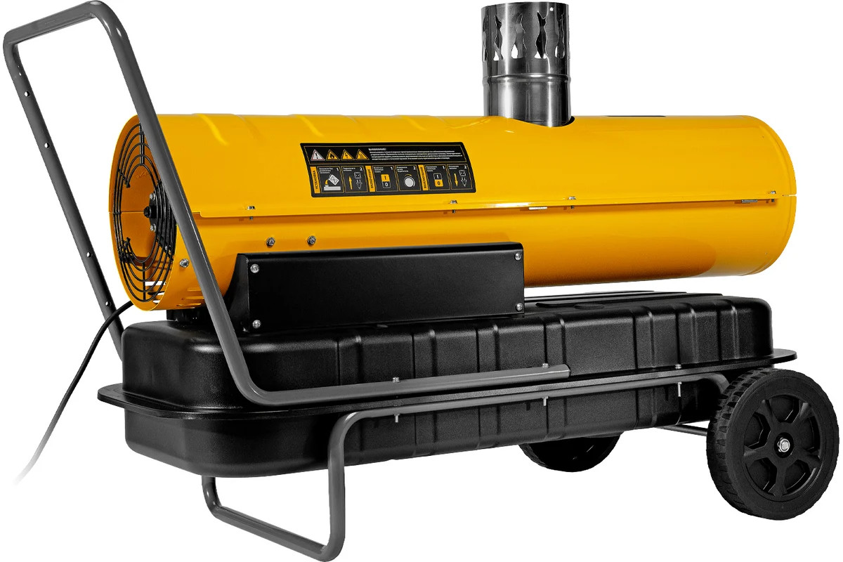 Дизельная тепловая пушка непрямого нагрева DENZEL NHG-30i 96492 с цифровым термостатом обладает тепловой мощностью 30 кВт и генерирует поток теплого воздуха 750 м3/ч.