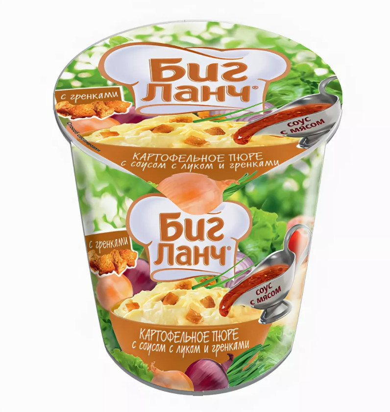 Картофельное пюре Биг Ланч с гренками создано из самых высококачественных ингредиентов в соответствии с лучшими традициями и вкусовыми предпочтениями потребителей. Аппетитное пюре в стаканчике готовится за 5 минут.