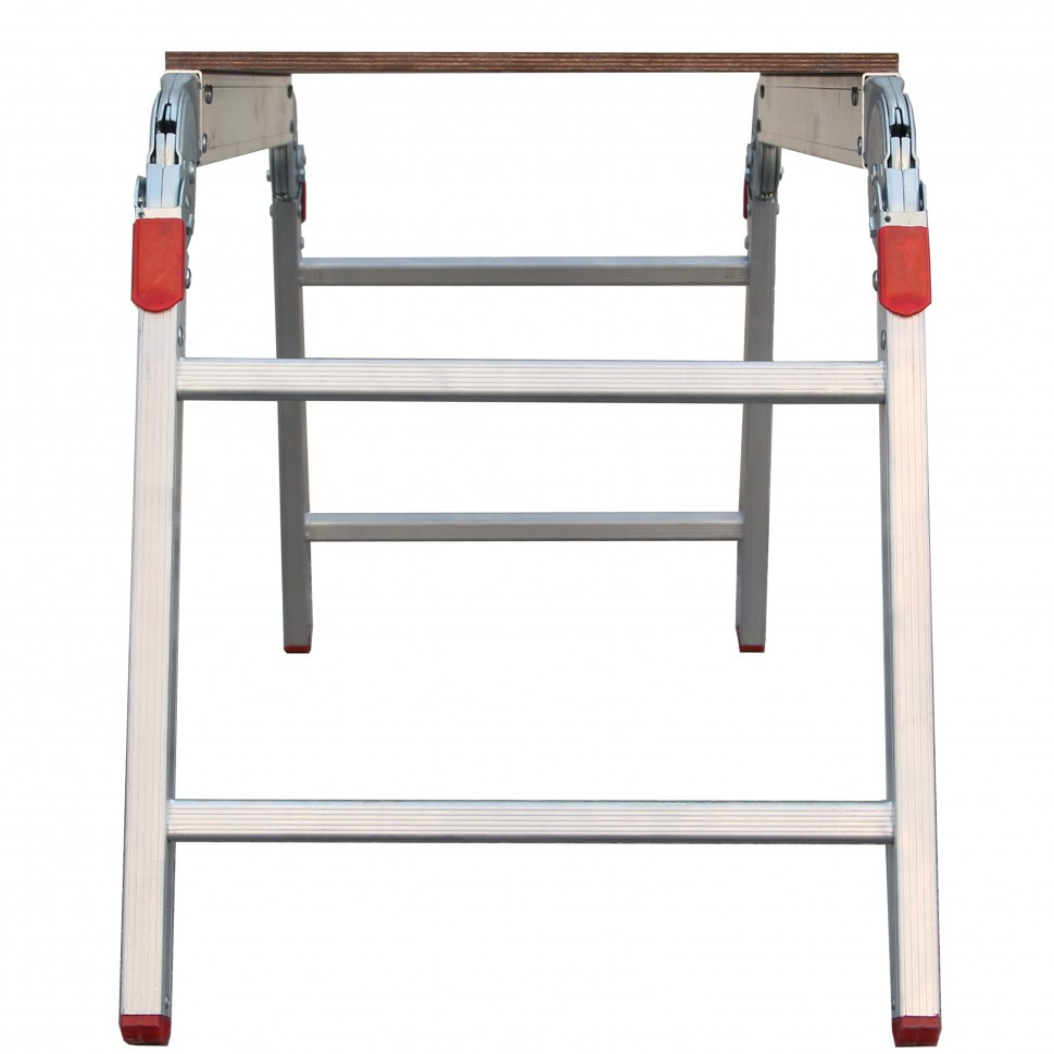 • Надежность — стойки и ступени изготовлены из прессованного алюминиевого профиля, рабочая площадка из антисептированной фанеры устойчива к воздействию микроорганизмов и насекомых.