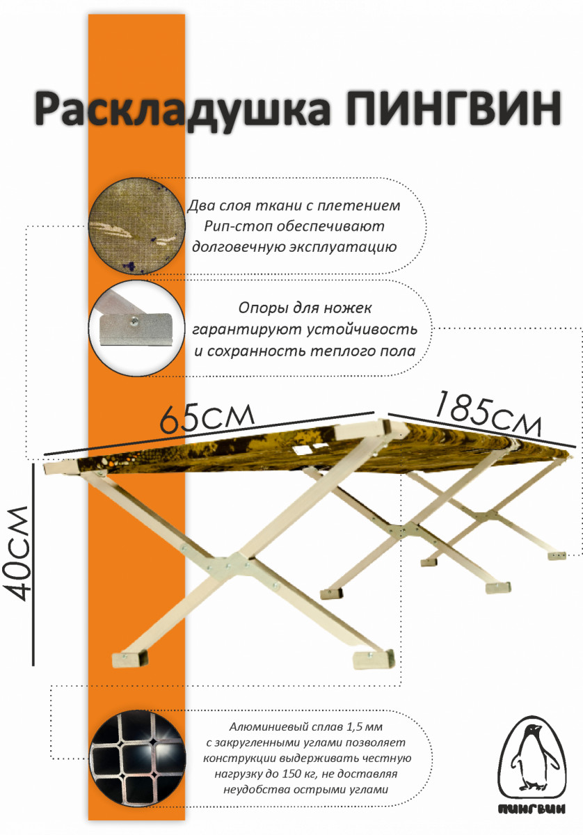 Раскладушка ПИНГВИН складная в чехле 185/65