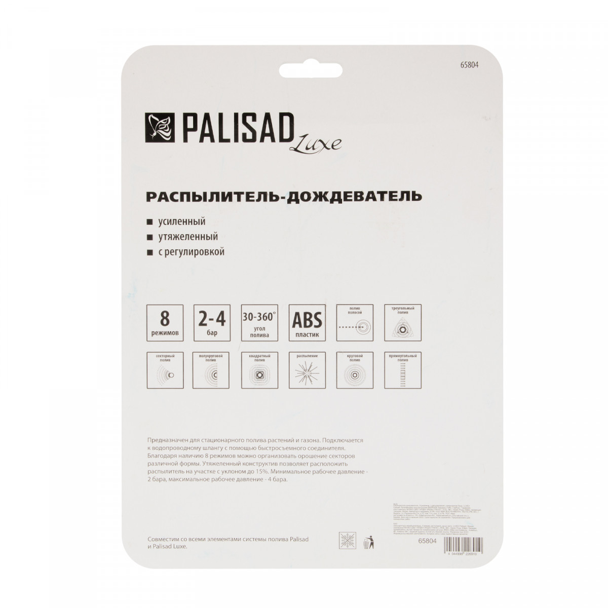 • Универсальность — распылитель совместим со всеми системами полива Palisad и Palisad Luxe.