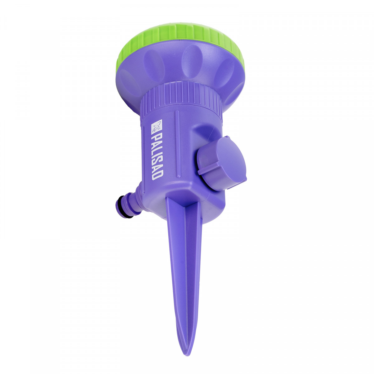 Распылитель-дождеватель Palisad 65405 9-режимный на пике используется для равномерного орошения газонов, клумб, кустарников и т.д. Максимальная площадь полива составляет 9 кв. м, дальность регулируется до 1,7 м в зависимости от выбранного режима. На распылителе есть соединитель для подключения к другим модулям и создания поливочной линии.