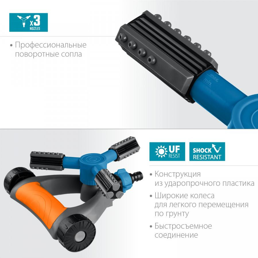 Распылитель PROLine RR-Pro 250 м2 полив на подставке с колёсиками 3 профессиональных сопла круговой