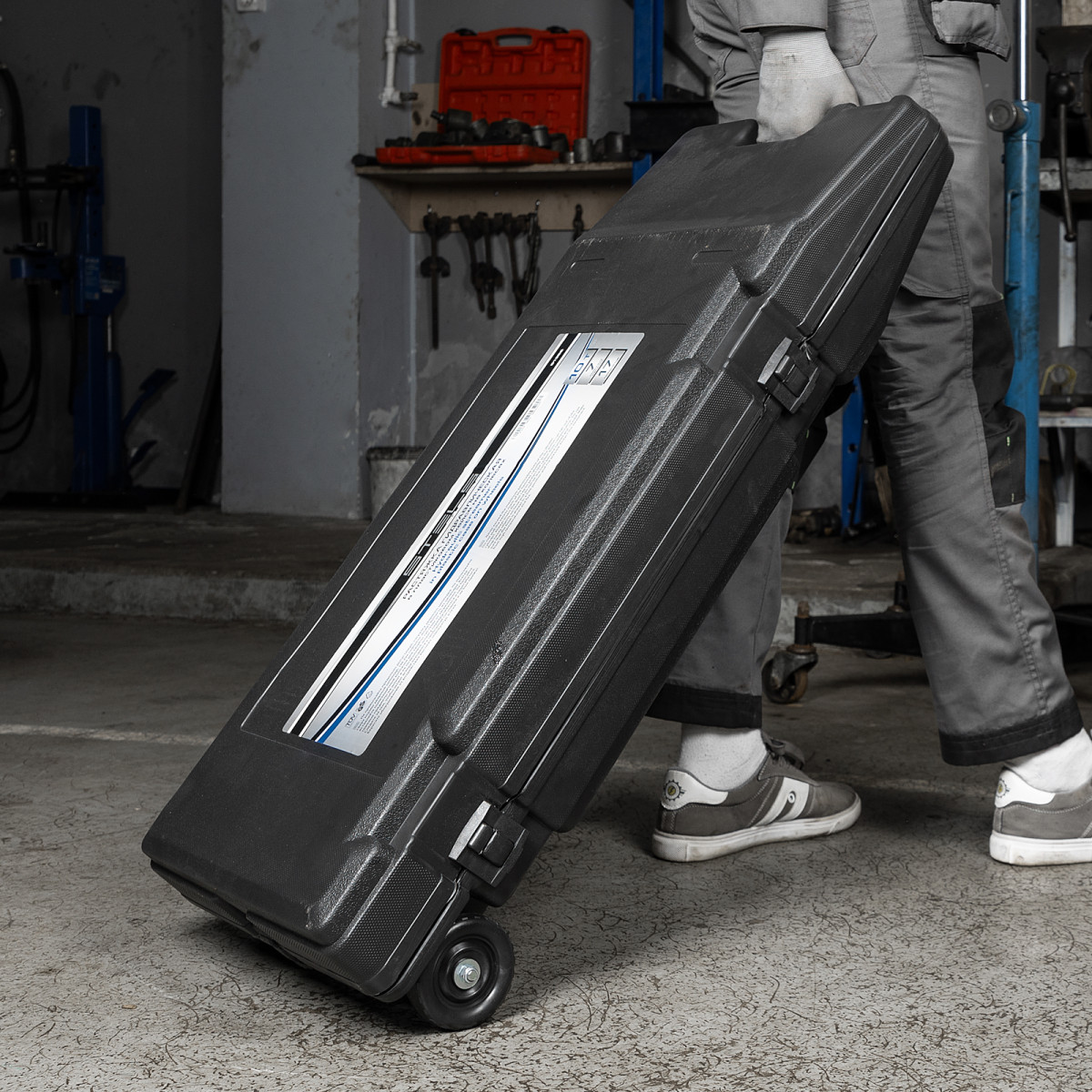 - Удобное хранение и транспортировка — набор упакован в прочный пластиковый кейс с ложементом и колесами.