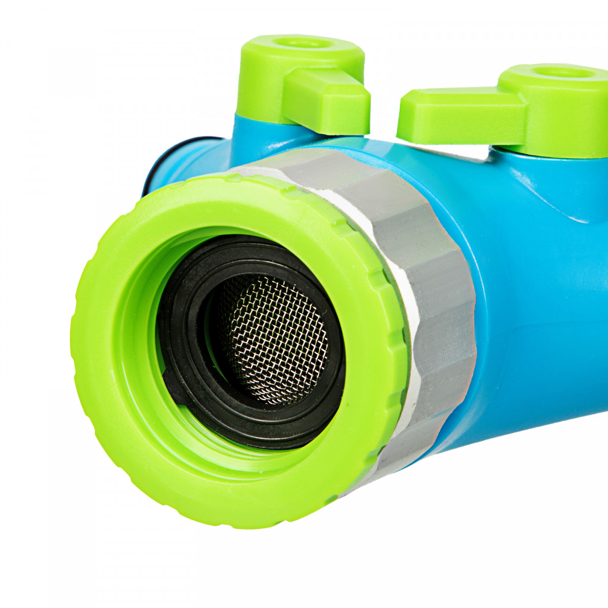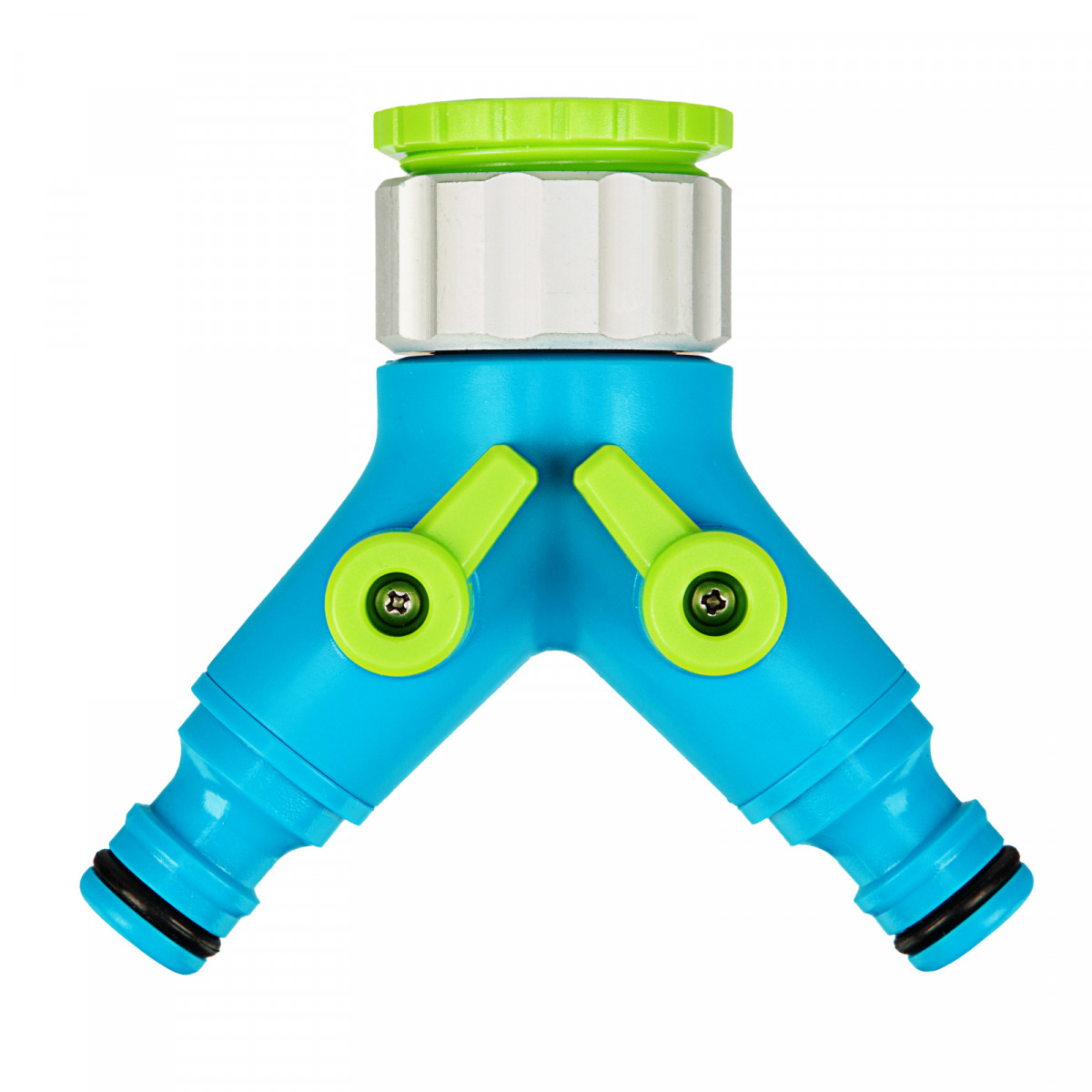 - Универсальность — со стороны адаптера имеется переходник, позволяющий подключать разветвитель к кранам и отводам диаметром 3/4" или 1".