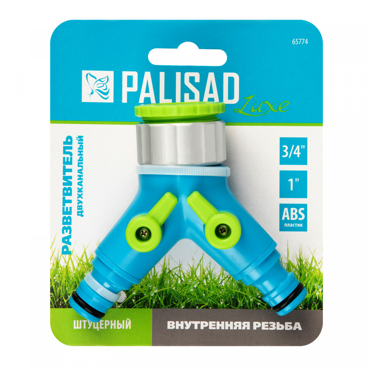 Двухканальный разветвитель Palisad LUXE 65774 с внутренней резьбой 3/4"-1", с переключателем, служит для подключения двух магистралей к источнику водоснабжения, имеющему кран или отвод с внешней резьбой. Аксессуар позволяет охватить значительную площадь полива при монтаже системы орошения на дачном участке.