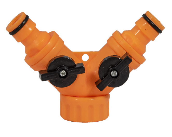 Разветвитель 2х канальный используется для организации полива огородов, садов, цветников на основе гибких шлангов.