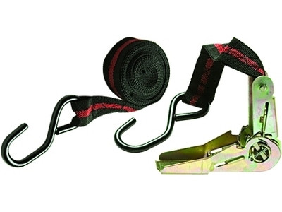 Ремень багажный из синтетического материала с крюками на концах. Храповый механизм обеспечивает лёгкость натяжения ремня. Данный ремень применяется для закрепления предметов в решетчатых поддонах, прежде всего в открытых багажниках, монтируемых на крышах легковых автомобилей.
