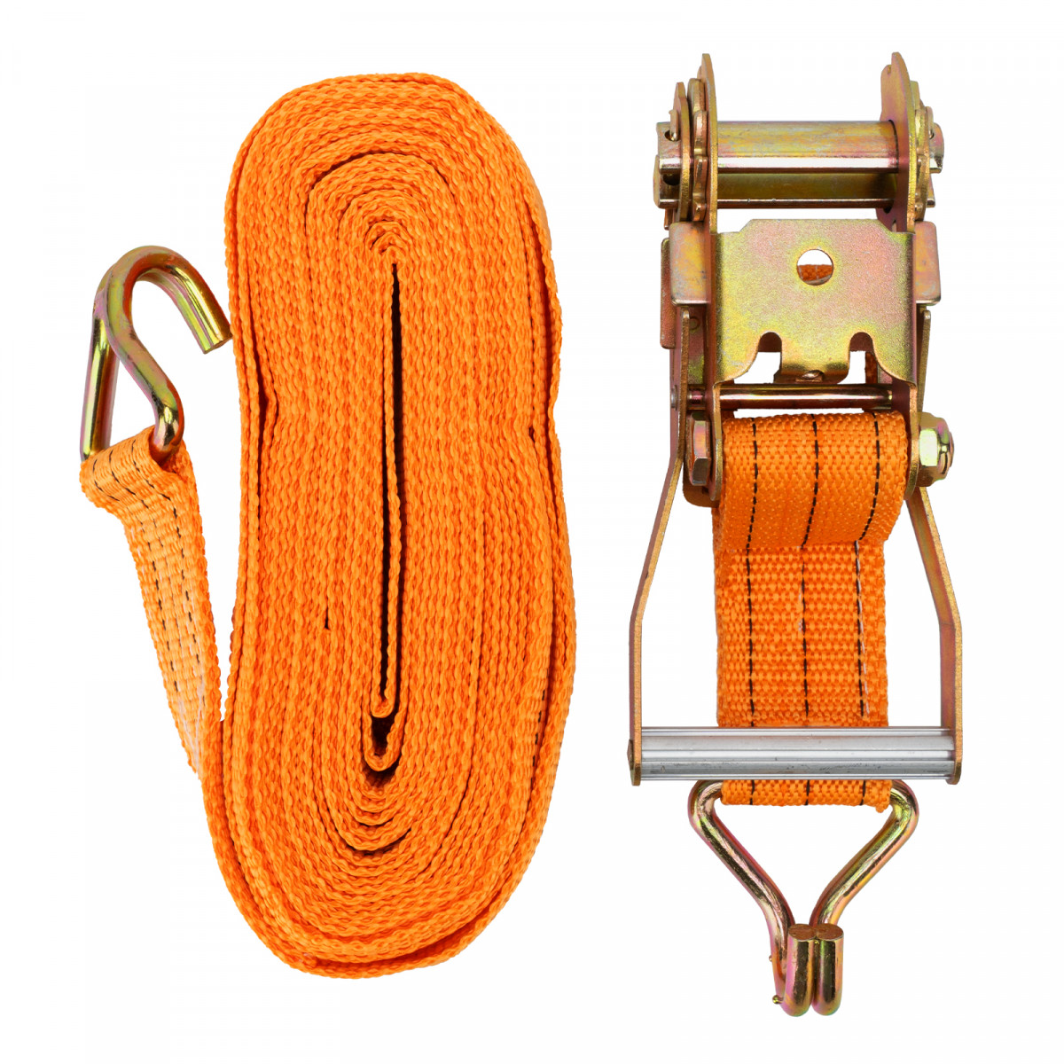 Багажный ремень с крюками Stels 54385 шириной 5 см и длиной 10 м, с храповым механизмом, предназначен для фиксации грузов на решетчатых конструкциях, например, открытых автомобильных багажниках, а также в прицепах. Пригодится для транспортировки различных предметов.