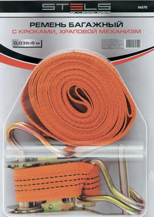 Ремень багажный с крюками, 5x0.038м, храповый механизм // Stels
