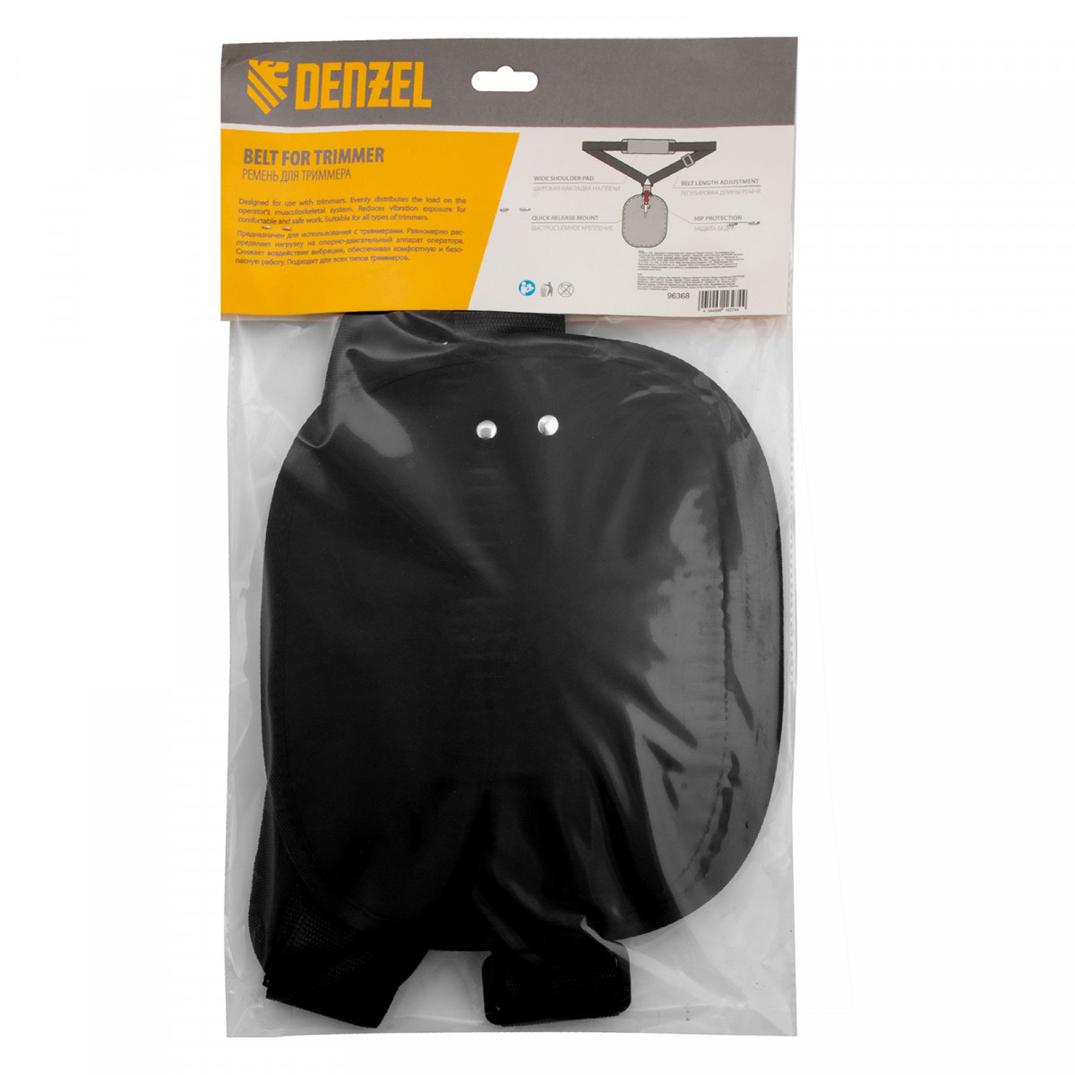 Универсальный ремень Denzel 96368 с защитой бедра предназначен для облегчения работы с триммерами. Он подвешивается на плечо, позволяя снизить нагрузку на руки, что удобно для выполнения работ средней продолжительности.