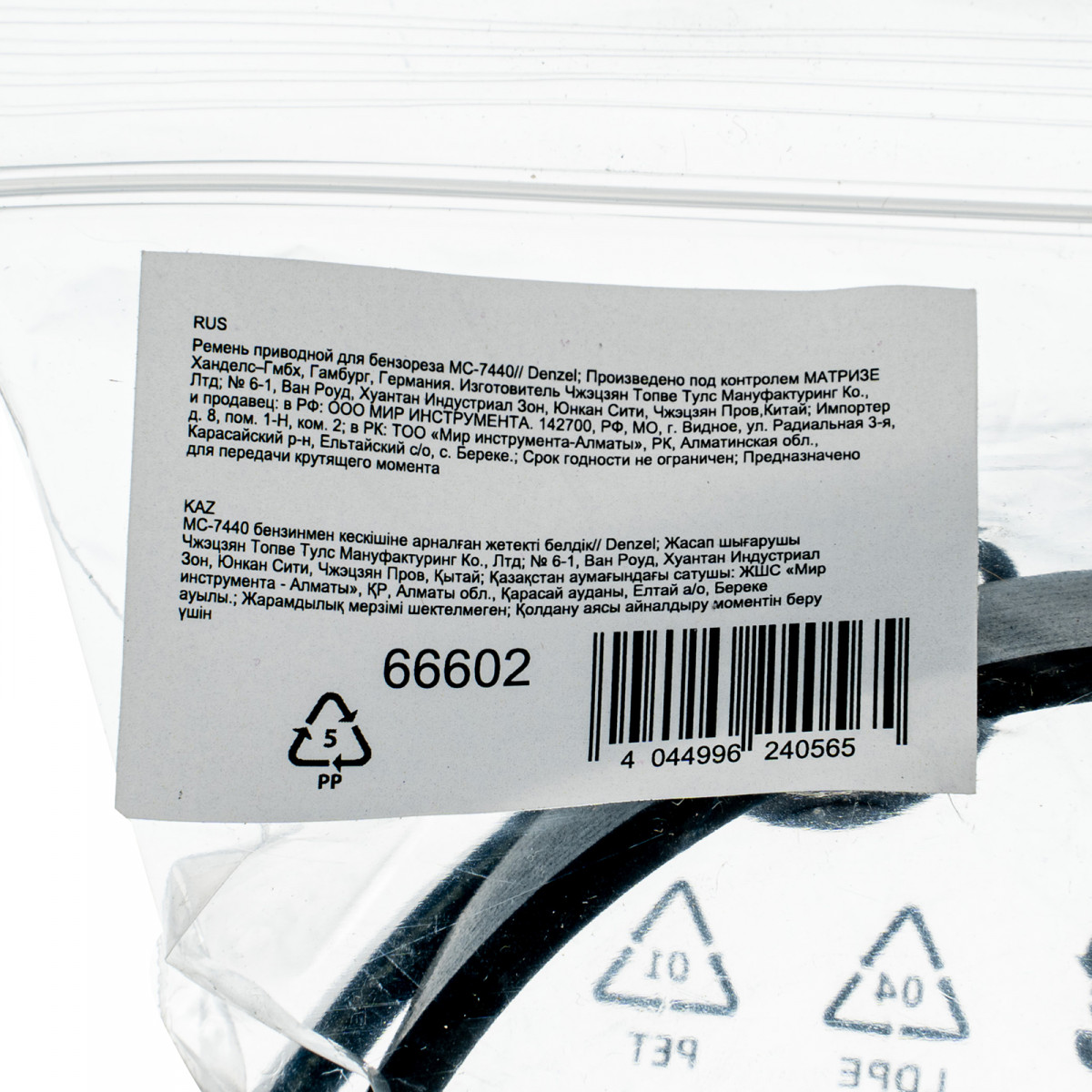 Приводной ремень Denzel 66602 передает крутящий момент с выходного вала, обеспечивая эффективное функционирование бензореза Denzel МС-7440 (арт. 66302). Позволяет восстановить работоспособность техники в случае растяжения или обрыва установленного ремня.