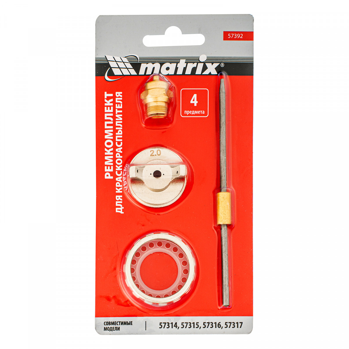 Ремкомплект для краскораспылителя 4 предмета: сопло 2,0 мм, игла, форсунка, зажим сопла Matrix