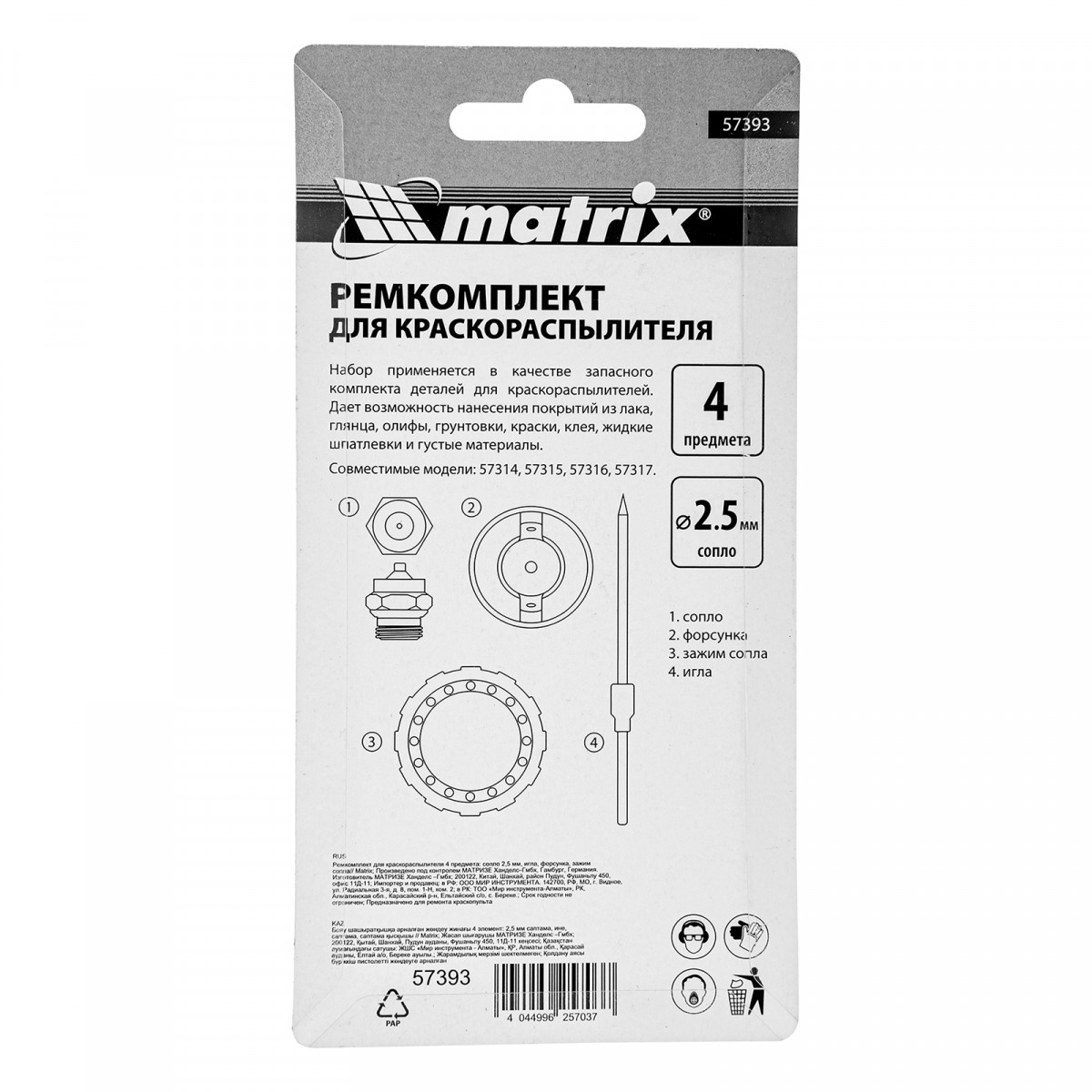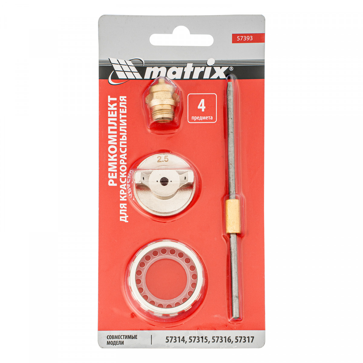 Ремкомплект для краскораспылителя 4 предмета: сопло 2,5 мм, игла, форсунка, зажим сопла Matrix