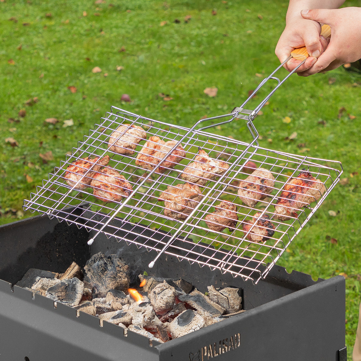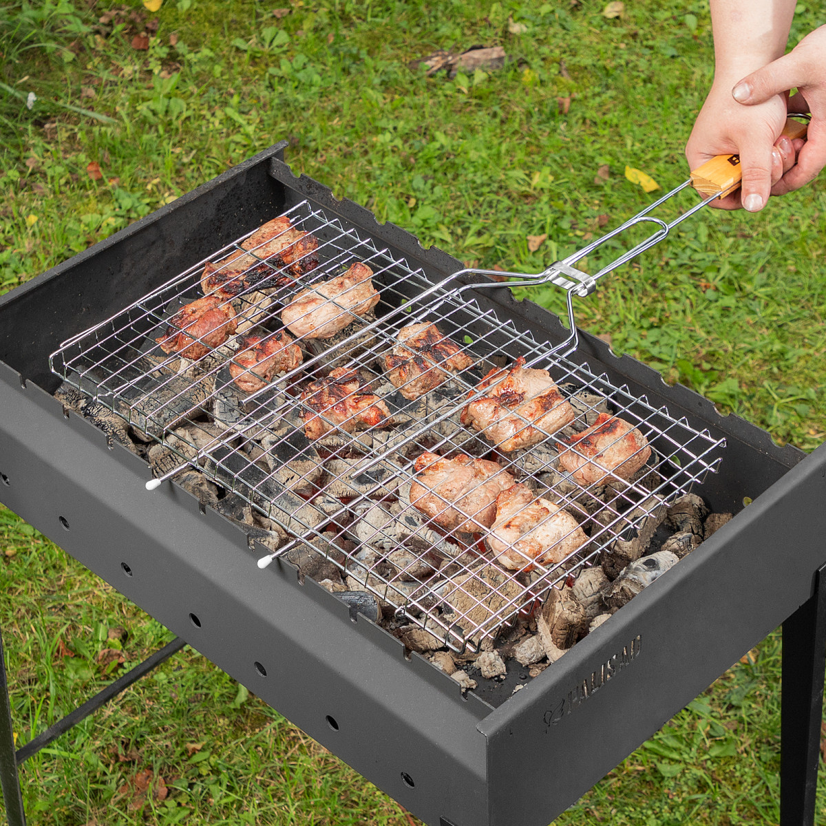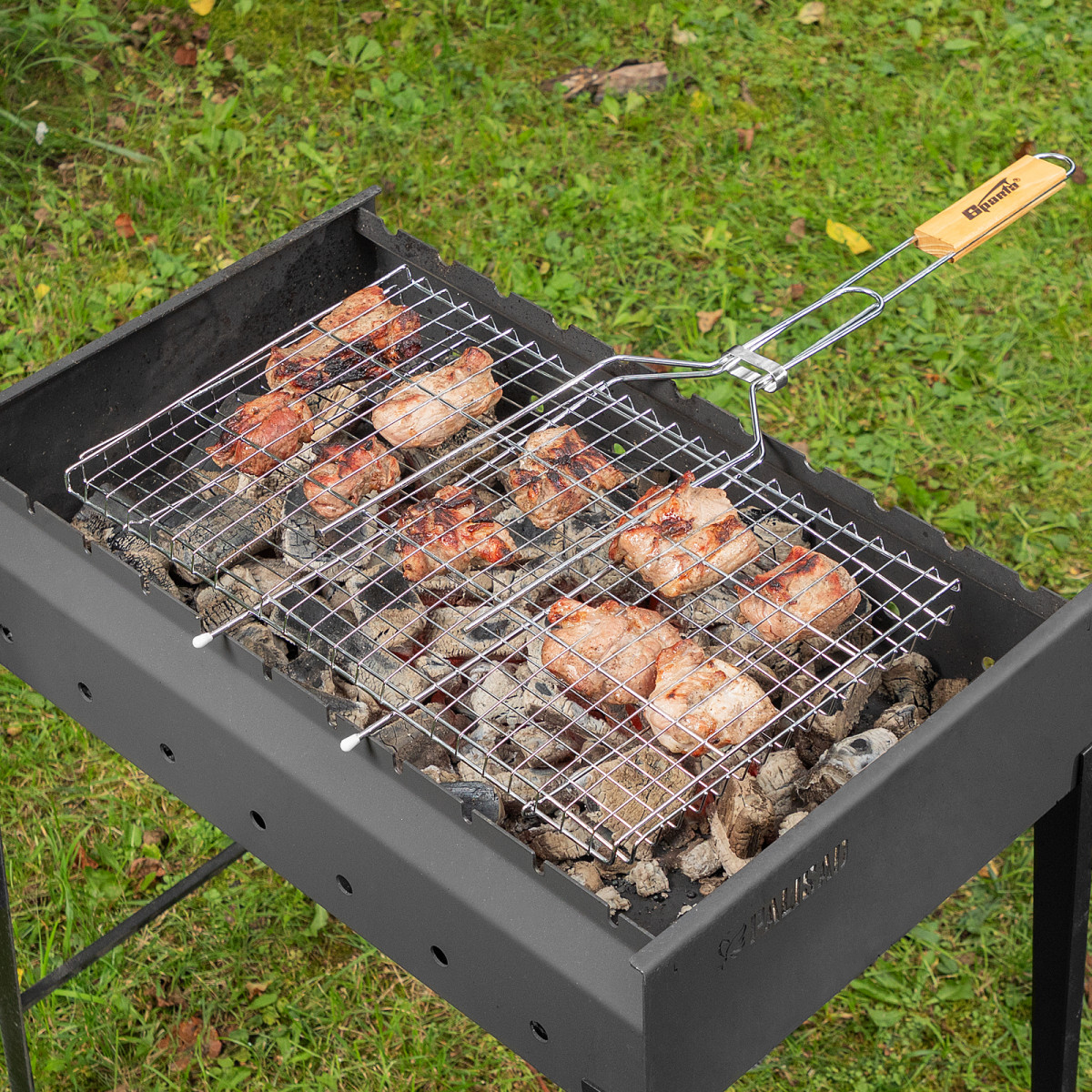 Хромированное покрытие решетки из жаропрочной стали обеспечивает долговечность и надежность при использовании на углях.