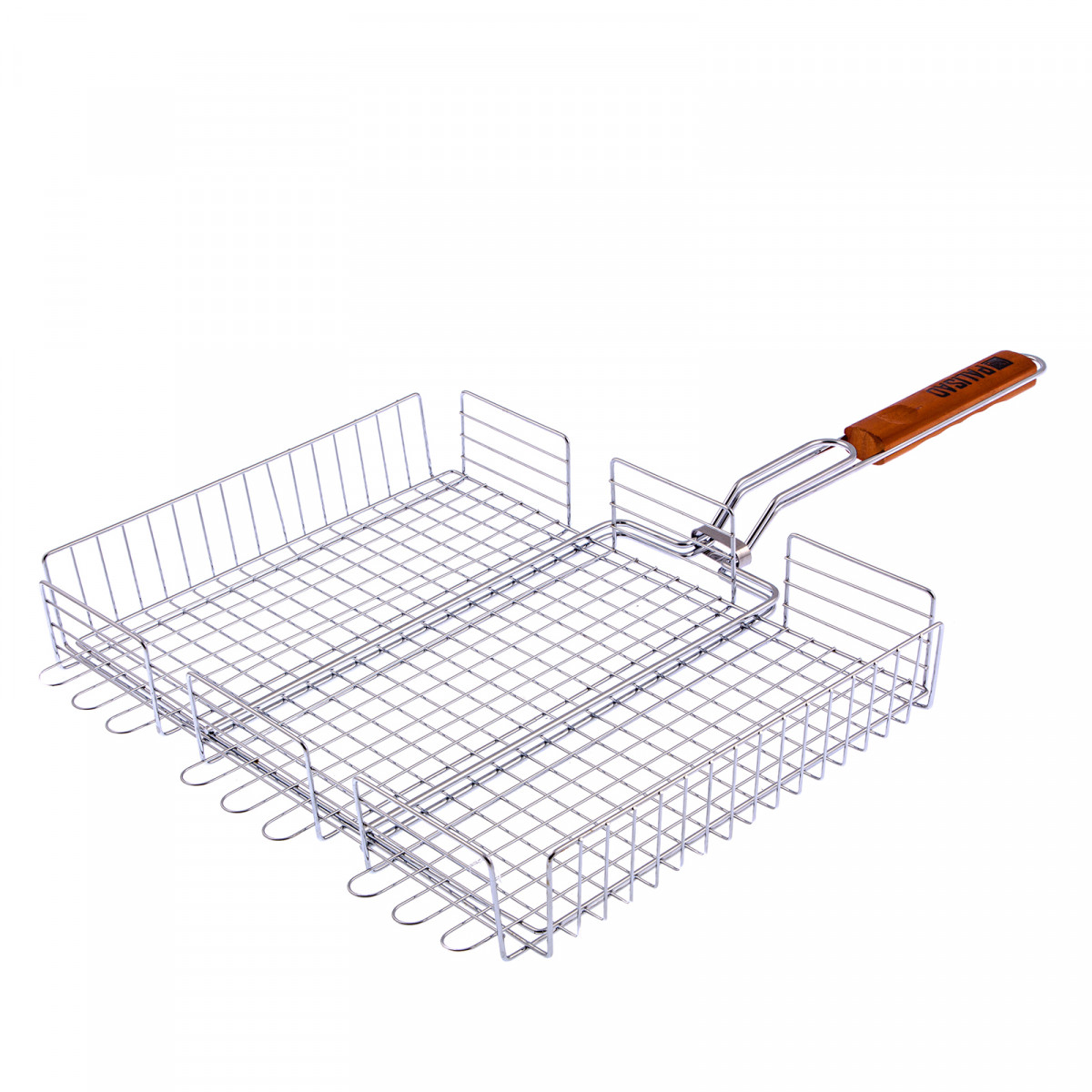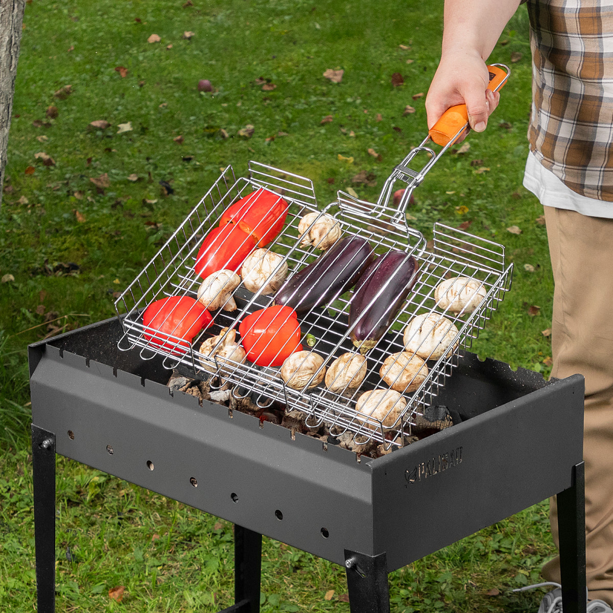 - За счет увеличенных опорных стержней решетка надежно фиксируется на мангале, а для жарки используется вся рабочая площадь.