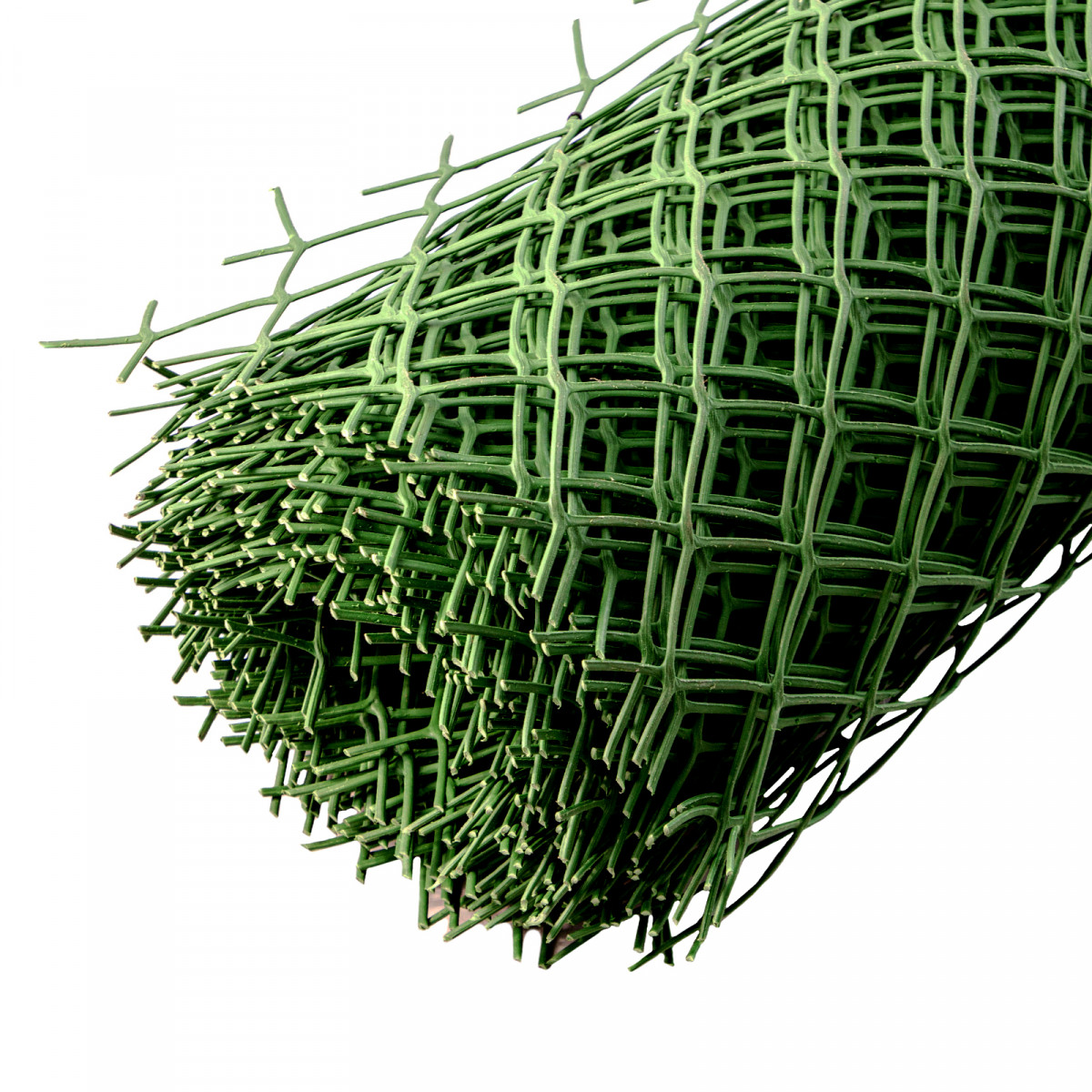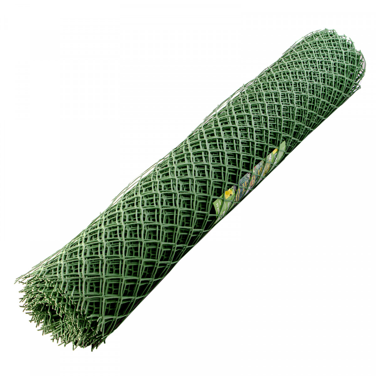 Зеленая пластиковая заборная решетка 64523, 1,5 х 25 м, в рулоне, с ячейками 70 х 70 мм, служит для ограждения садовых и жилых участков. Благодаря ей можно построить забор на детских и спортивных площадках или зонировать пространство на даче. Решетка также позволяет создать живую изгородь в саду или вольер для птиц и животных.