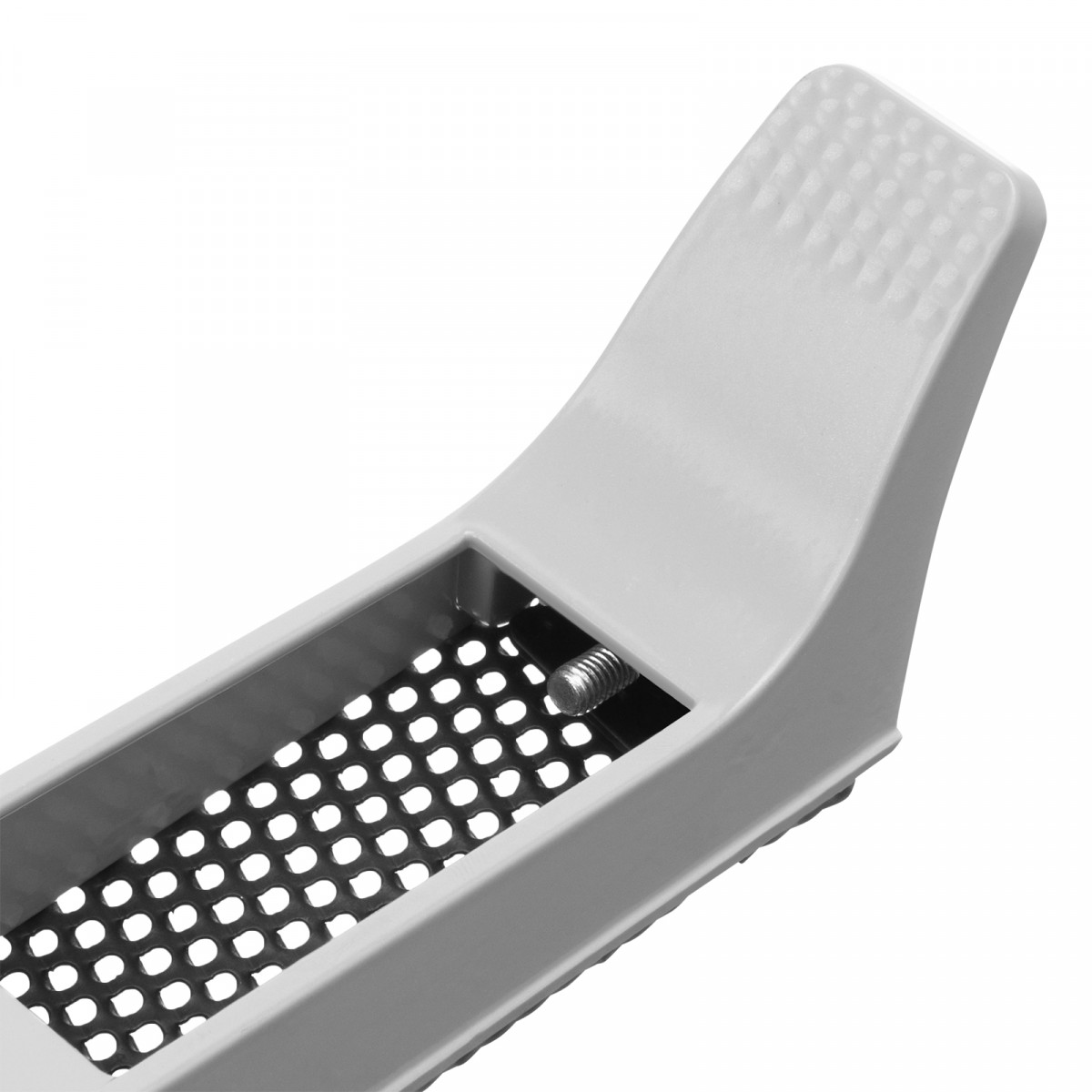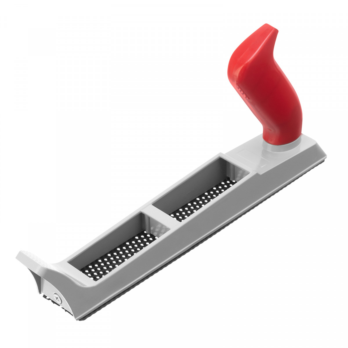 Металлический обдирочный рубанок Matrix 879145 с размером подошвы 250 х 42 мм используется при проведении отделочных работ и предназначен для выравнивания кромок плит из гипсокартона, пластмассы, фибергласа и мягкой древесины. Такая обработка облегчает стыковку элементов отделки и повышает качество выполняемых работ.