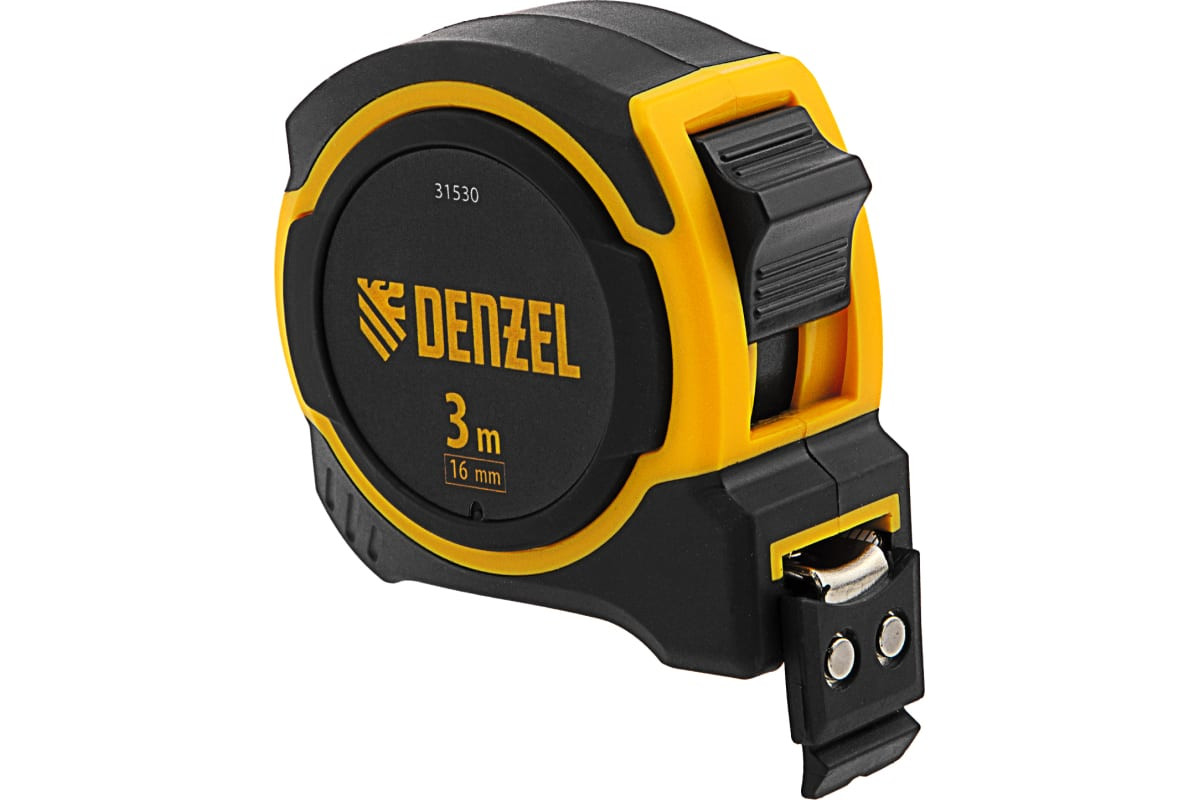 Рулетка 3 м*16мм двухкомпонентный корпус магнитный обрезиненный зацеп Denzel