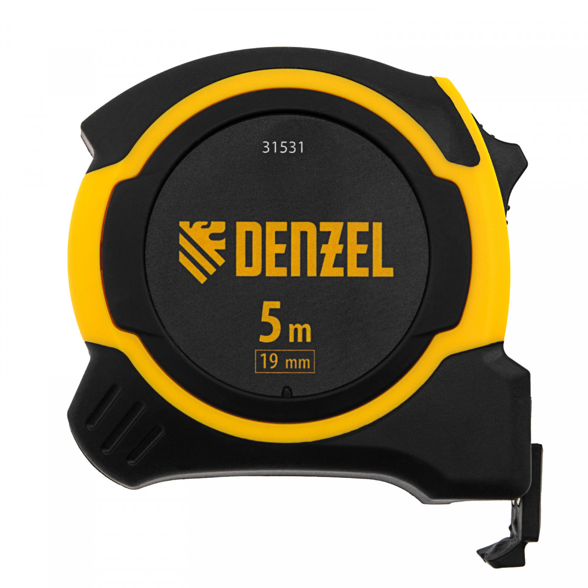 Рулетка 5м х 19мм, двухкомп. корпус, магнитный обрезиненный зацеп Denzel