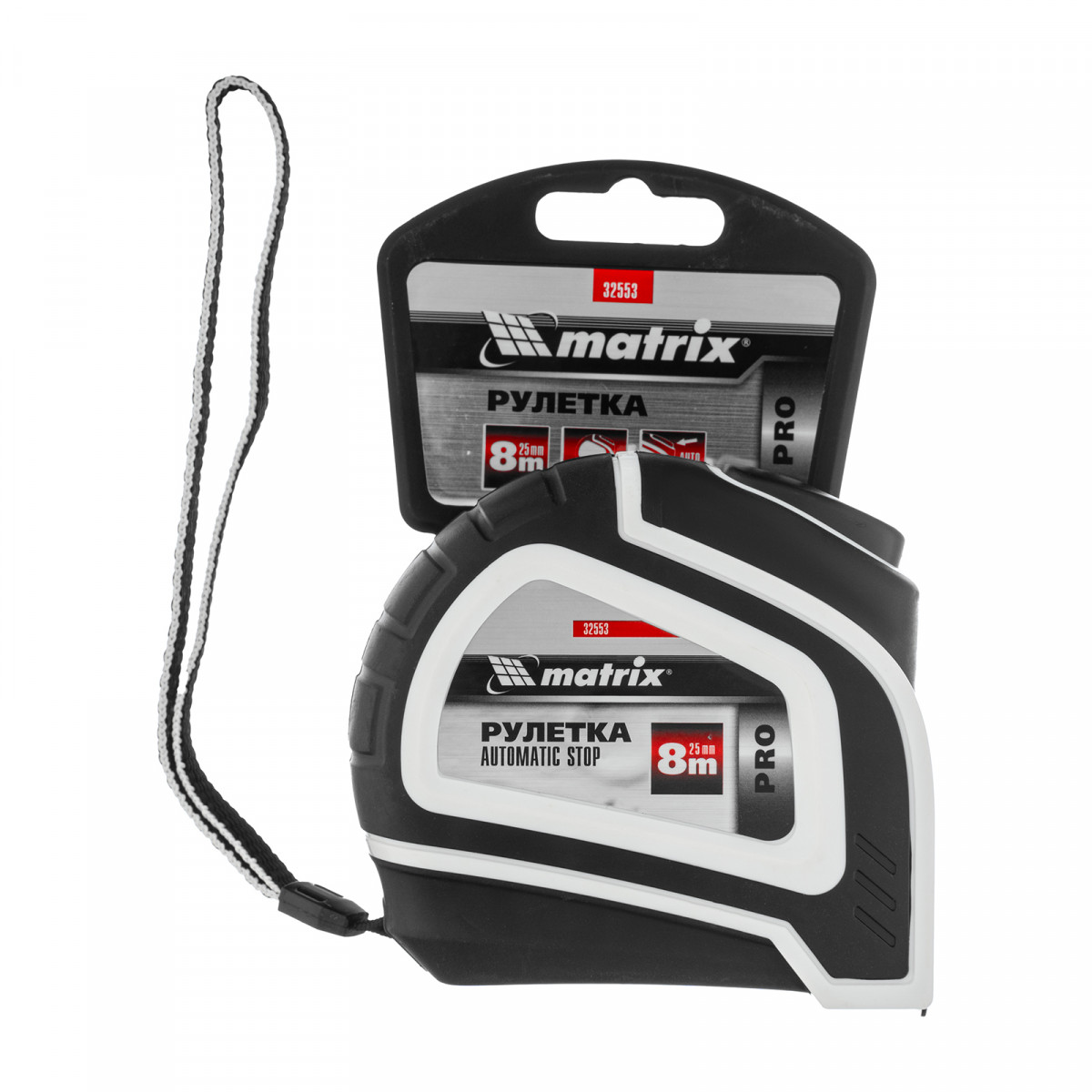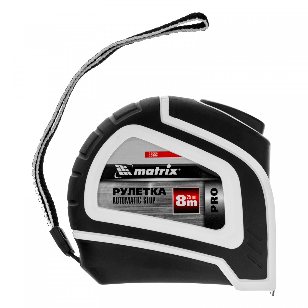 Рулетка Autostop,8 м х 25 мм,двухкомпонентный корпус,автоматическая фиксация,Pro Matrix