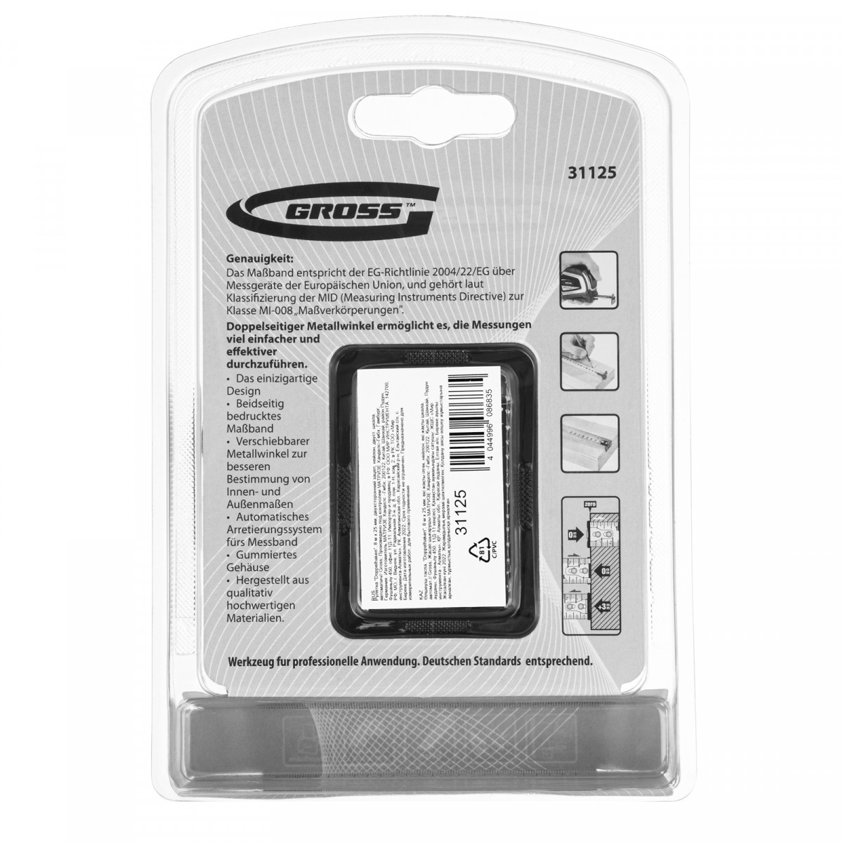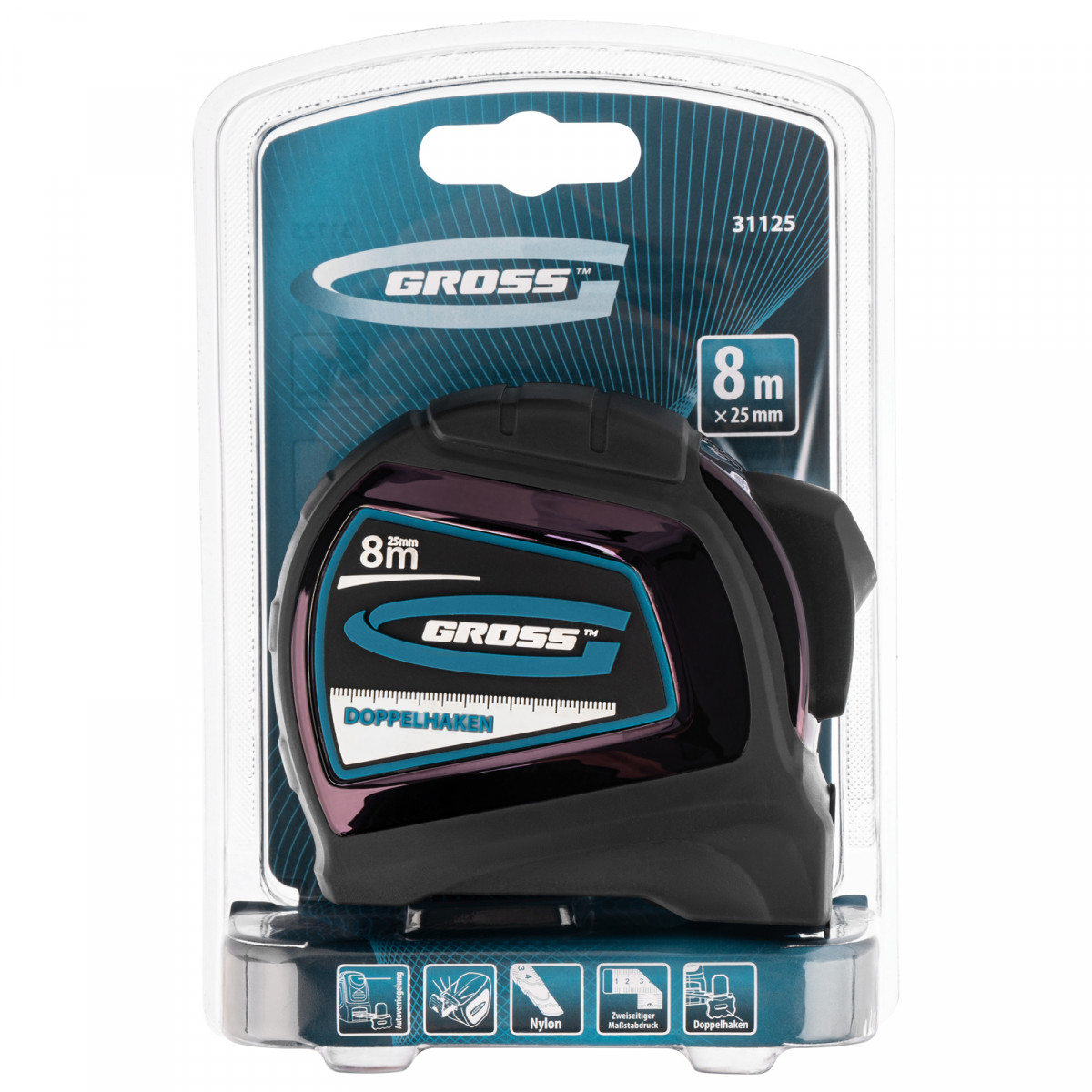 Рулетка "Doppelhaken",8 м x 25 мм,двухсторонний зацеп,Нейлон,двусторонняя шкала,автоматическая фиксация Gross