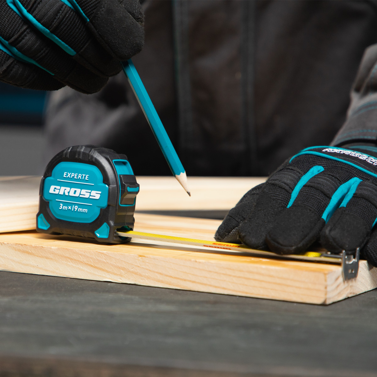 Рулетка Experte,3 м x 19 мм,двухкомпонентный корпус,магнит,двухсторонняя разметка,нейлон Gross