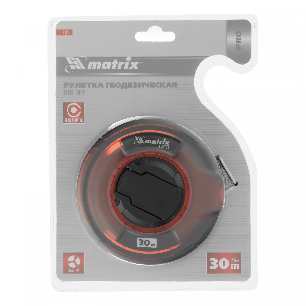 Рулетка геодезическая 30 м х 12,5 мм, закрытый корпус, стальная лента, односторонняя шкала, Pro Matrix
