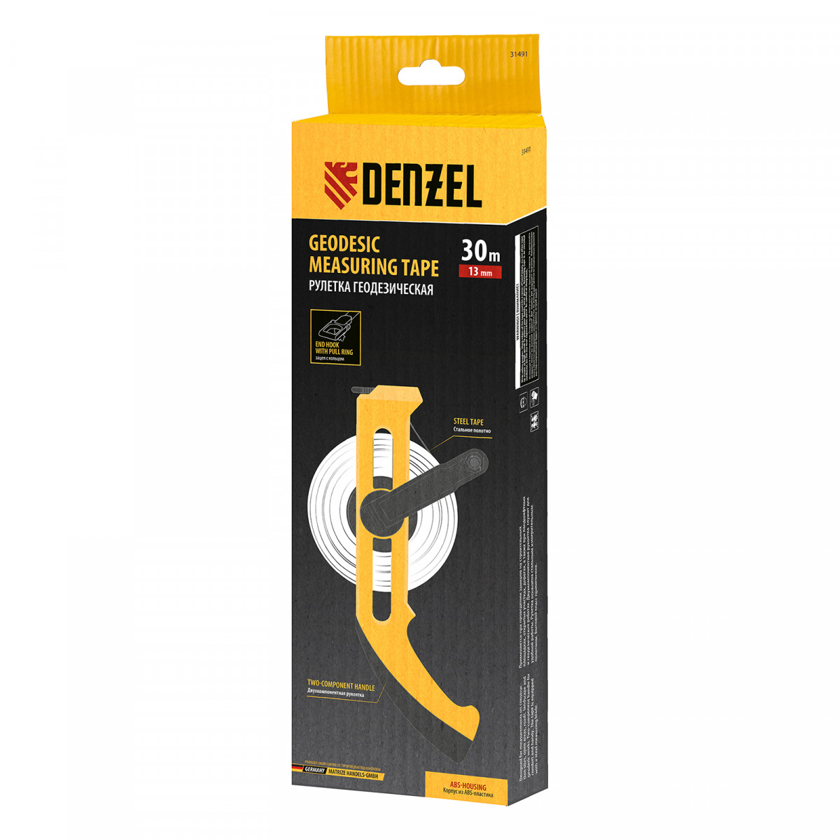 Рулетка геодезическая 30 м х 13 мм, открытый корпус, металлическая лента Denzel