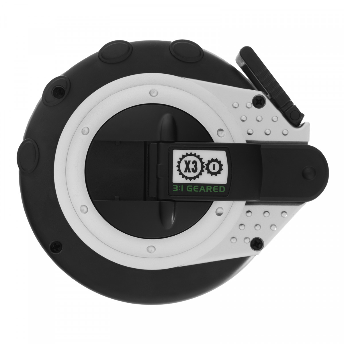 - Быстрый возврат полотна — возвратный механизм имеет передаточный коэффициент 3:1, что в 3 раза повышает эффективность данной модели по сравнению с рулетками, оснащенными обычным механизмом.