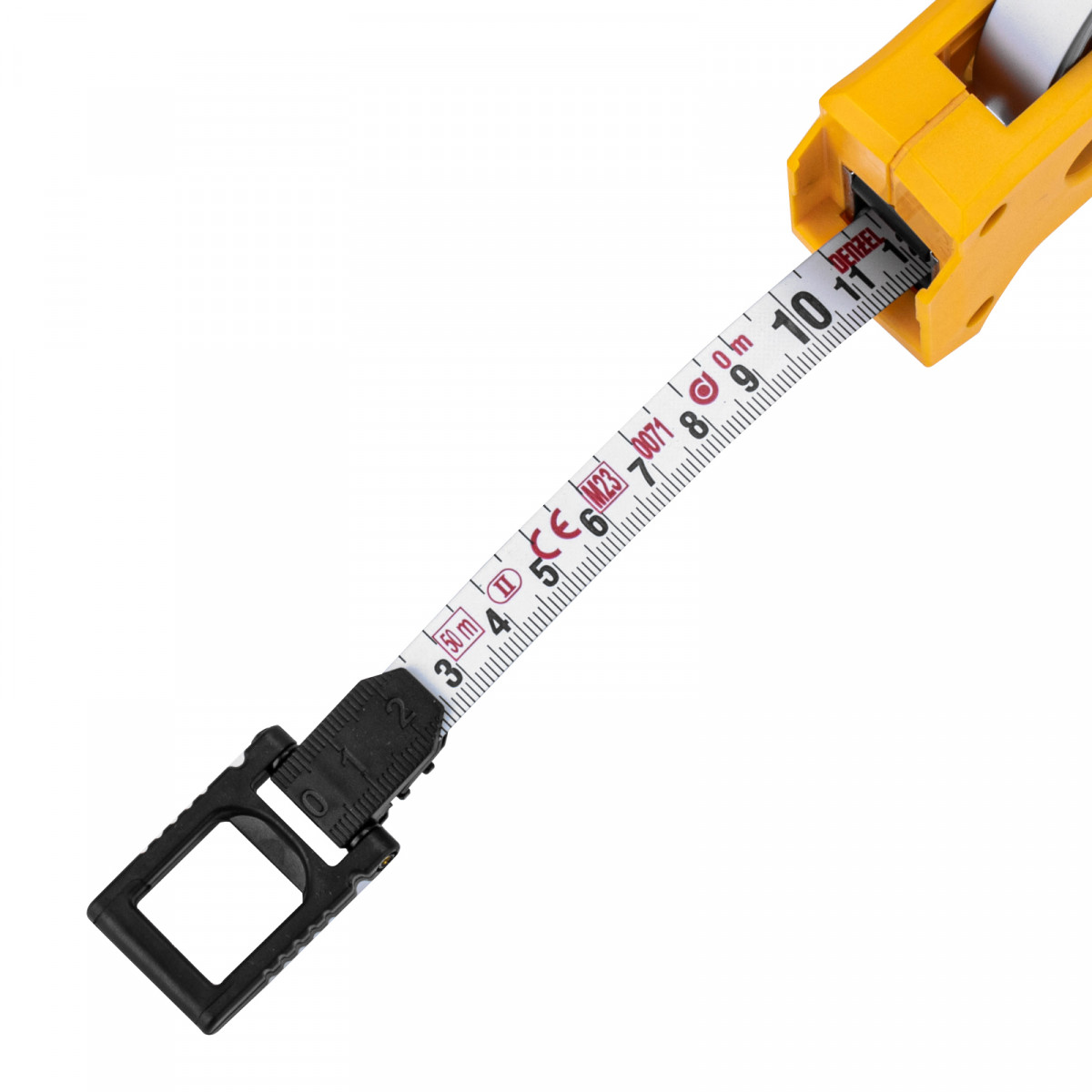• Удобная фиксация измерительной ленты на объекте — рулетка оснащена кольцом с подвижным зацепом.