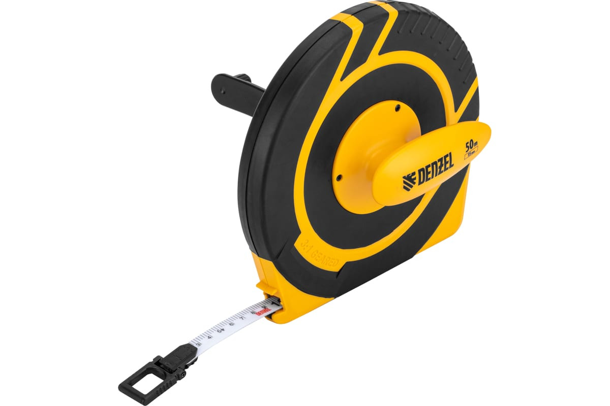 Рулетка геодезическая 50 м х 15 мм закрытый корпус фиберглассовая лента DENZEL
