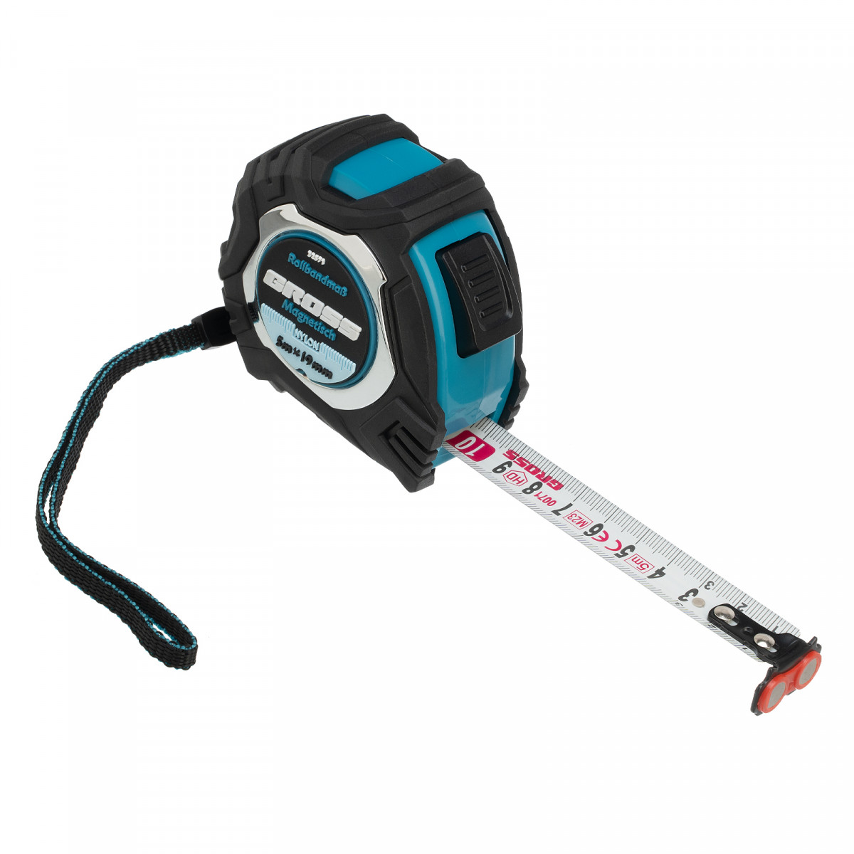 Рулетка Magnetisch 5 м х 19 мм,обрезиненный корпус,автоматическая фиксация,Нейлоновое покрытиеытие,зацеп с магнитом Gross