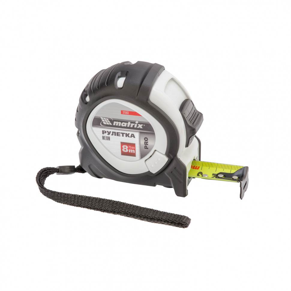 Рулетка Neon,8 м x 25 мм,обрезиненный корпус,3 фиксации,Pro Matrix