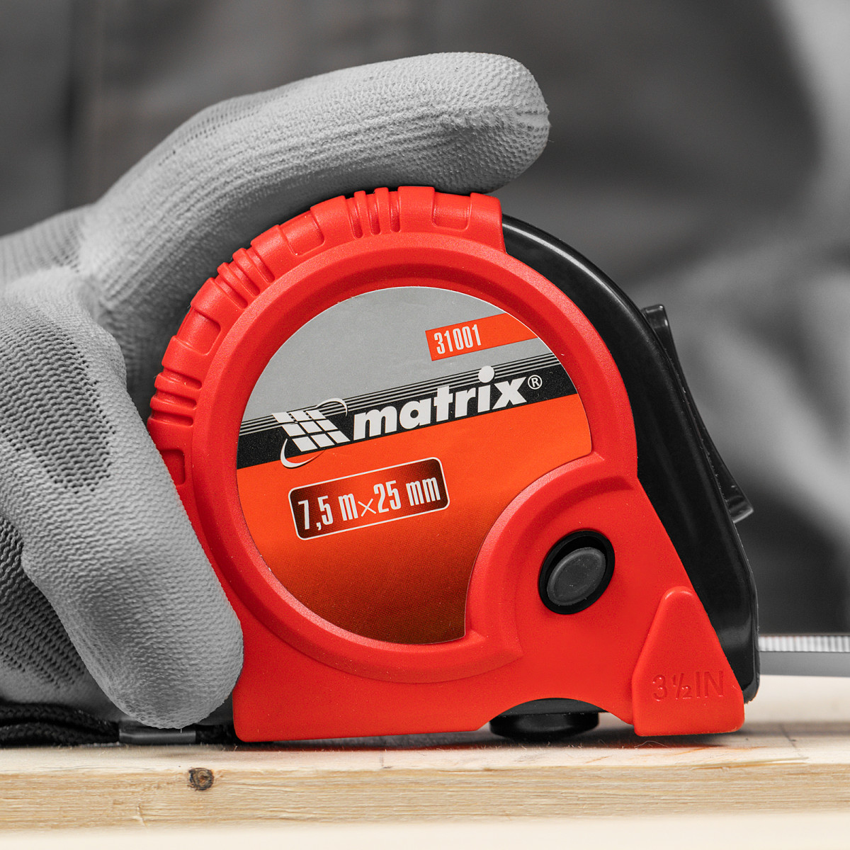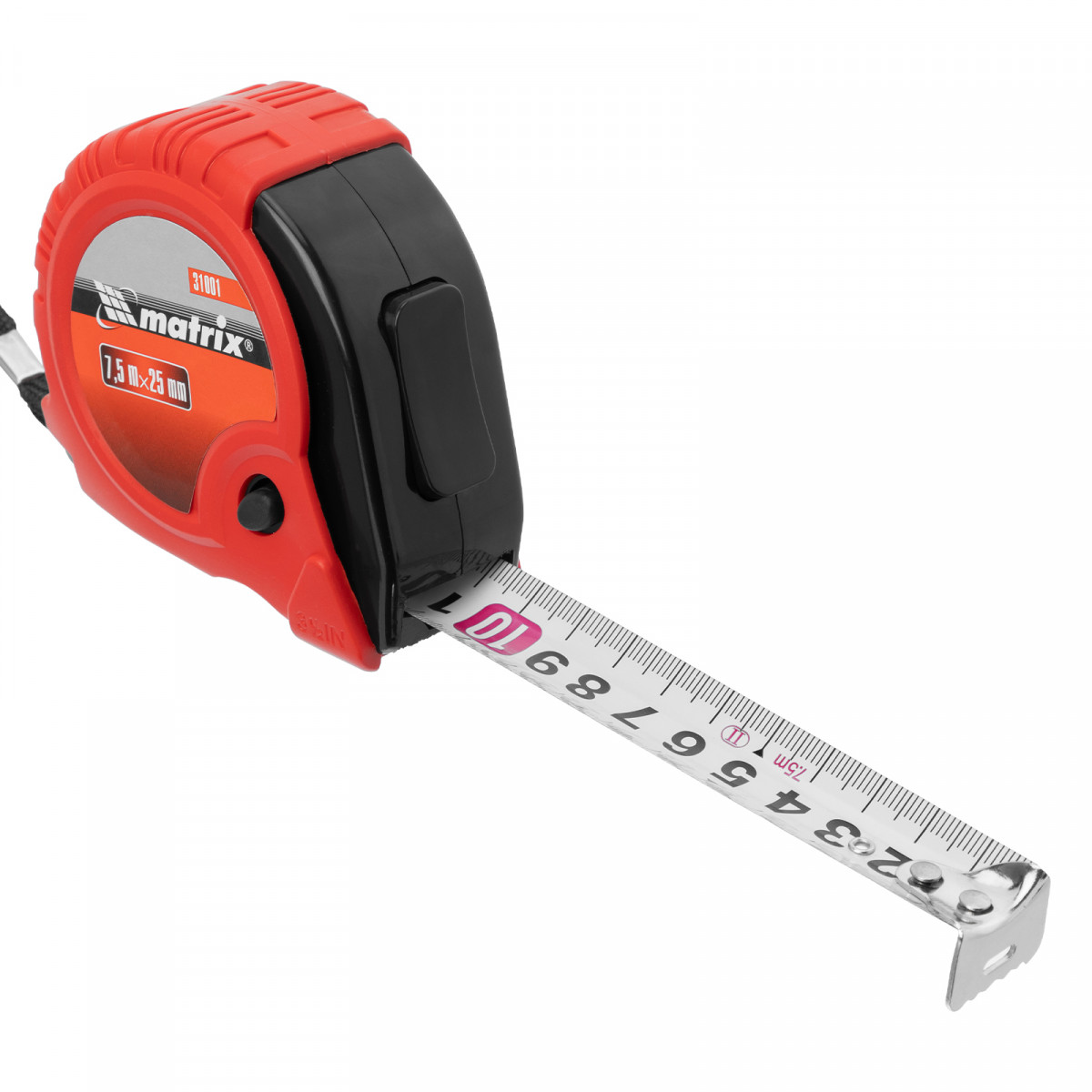 Рулетка Rubber,7,5 м х 25 мм,обрезиненный корпус Matrix